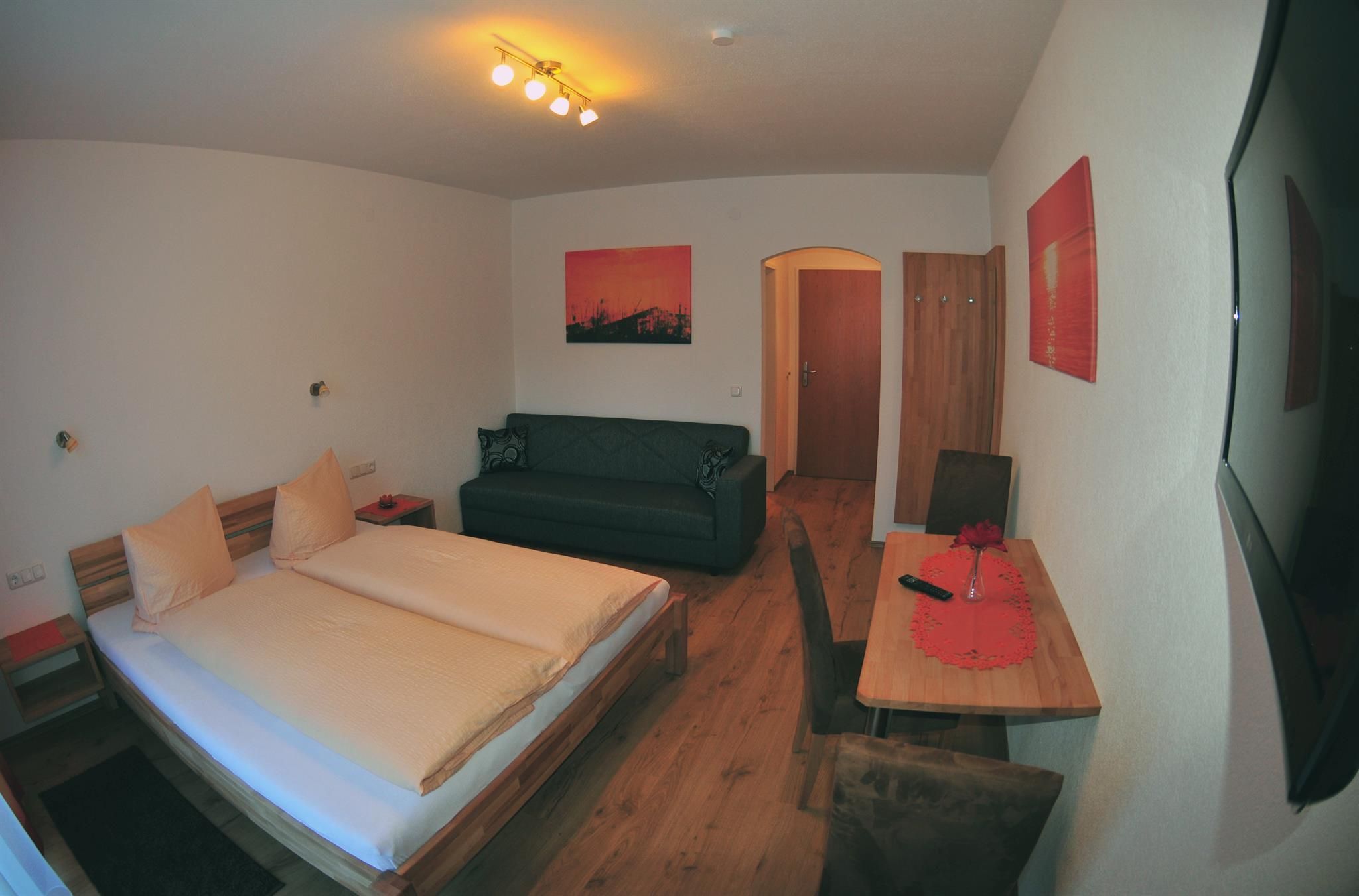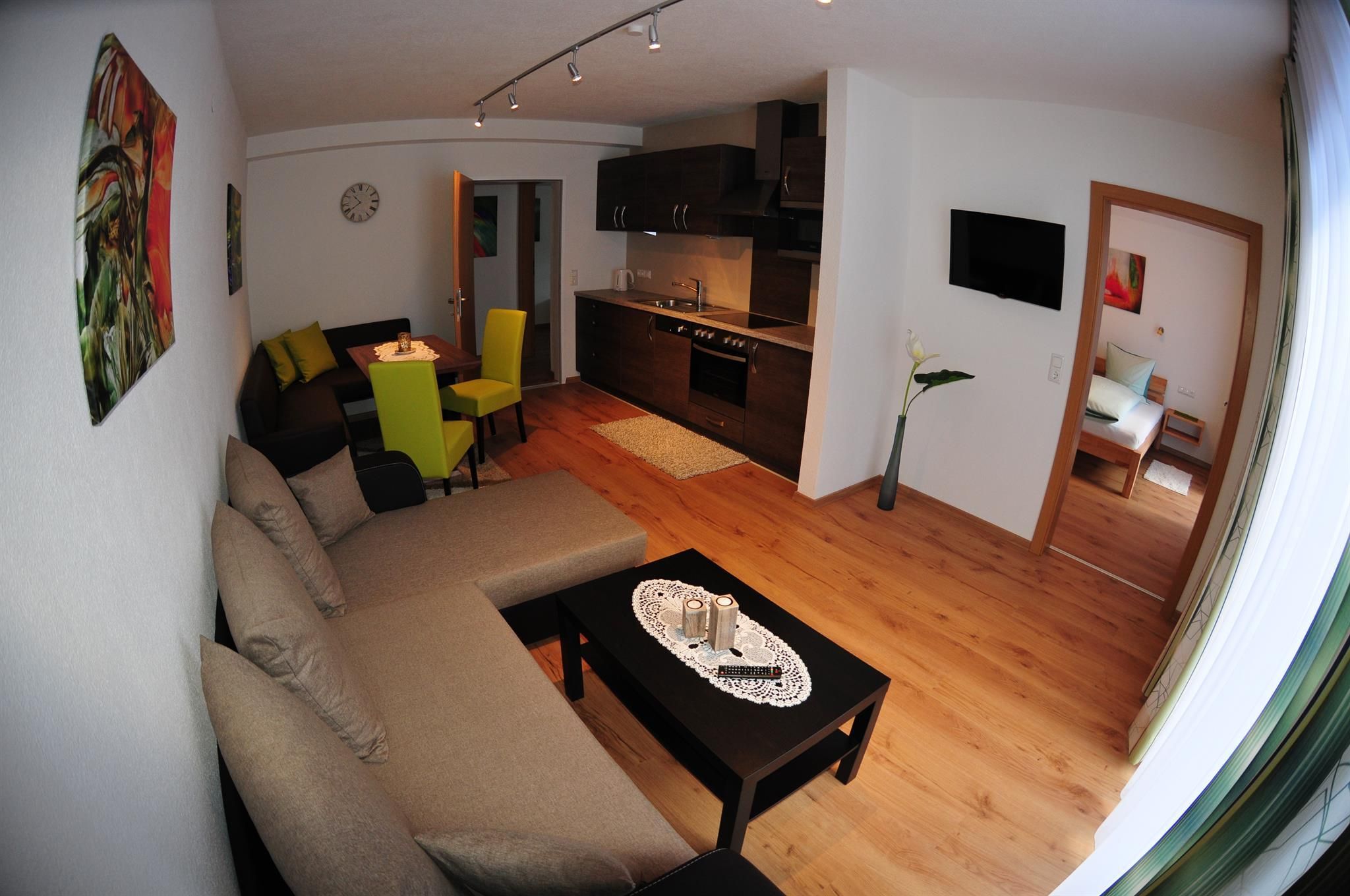 Comfort- App. Erdgeschoss: bestehend aus einem Vorraum, Küche mit Geschirrspüler, Eßecke mit Flat-TV, 2 getrennten Schlafzimmern (in einem Schlafzimmer ist ein Flat-TV), DU/WC; 4 Pers. Max 5 Personen