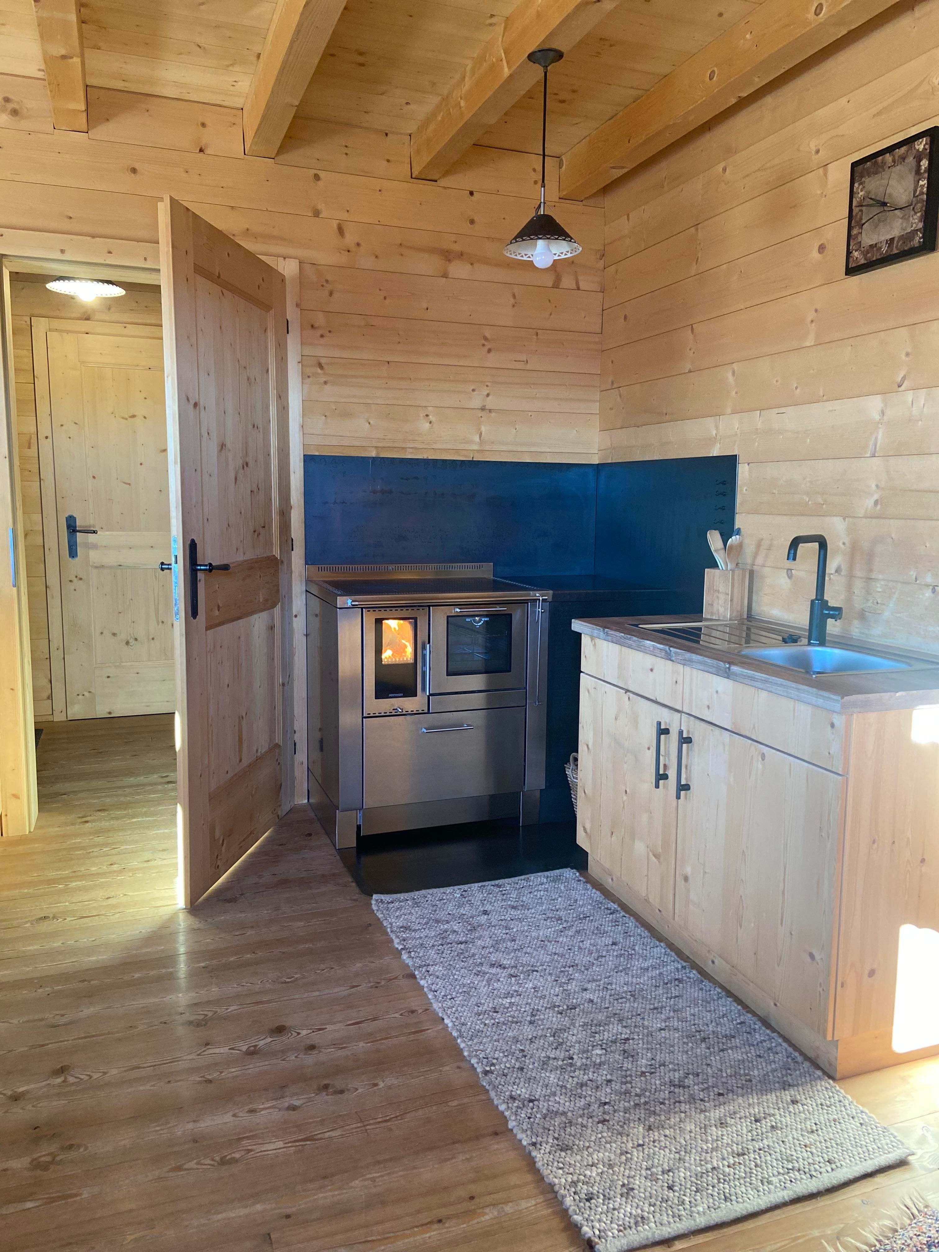 In der gemütlichen Stube wird am urigen Holzofen gekocht, selbstverständlich stellen wir dafür ausreichend Holz zur Verfügung.