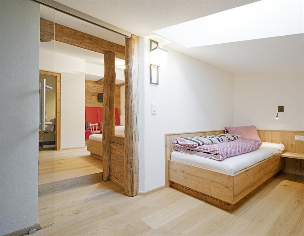 Alt trifft modern. Zimmer mit 2 getrennten Schlafzimmern, Dusche, WC, Fön, Radio, SAT-tV und Balkon.