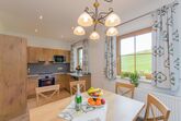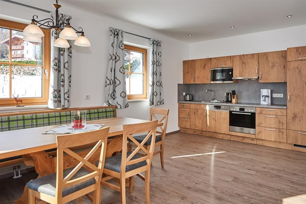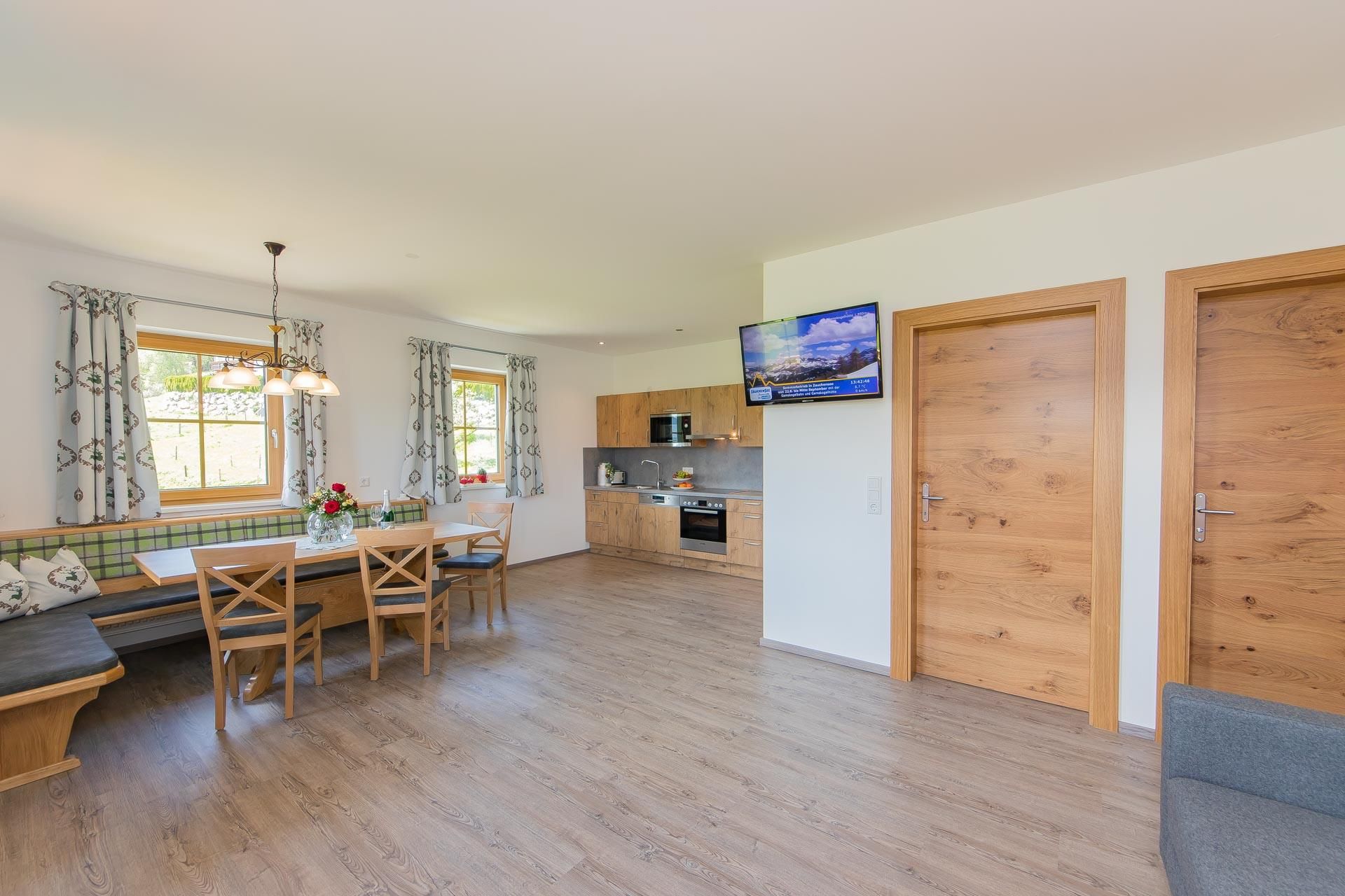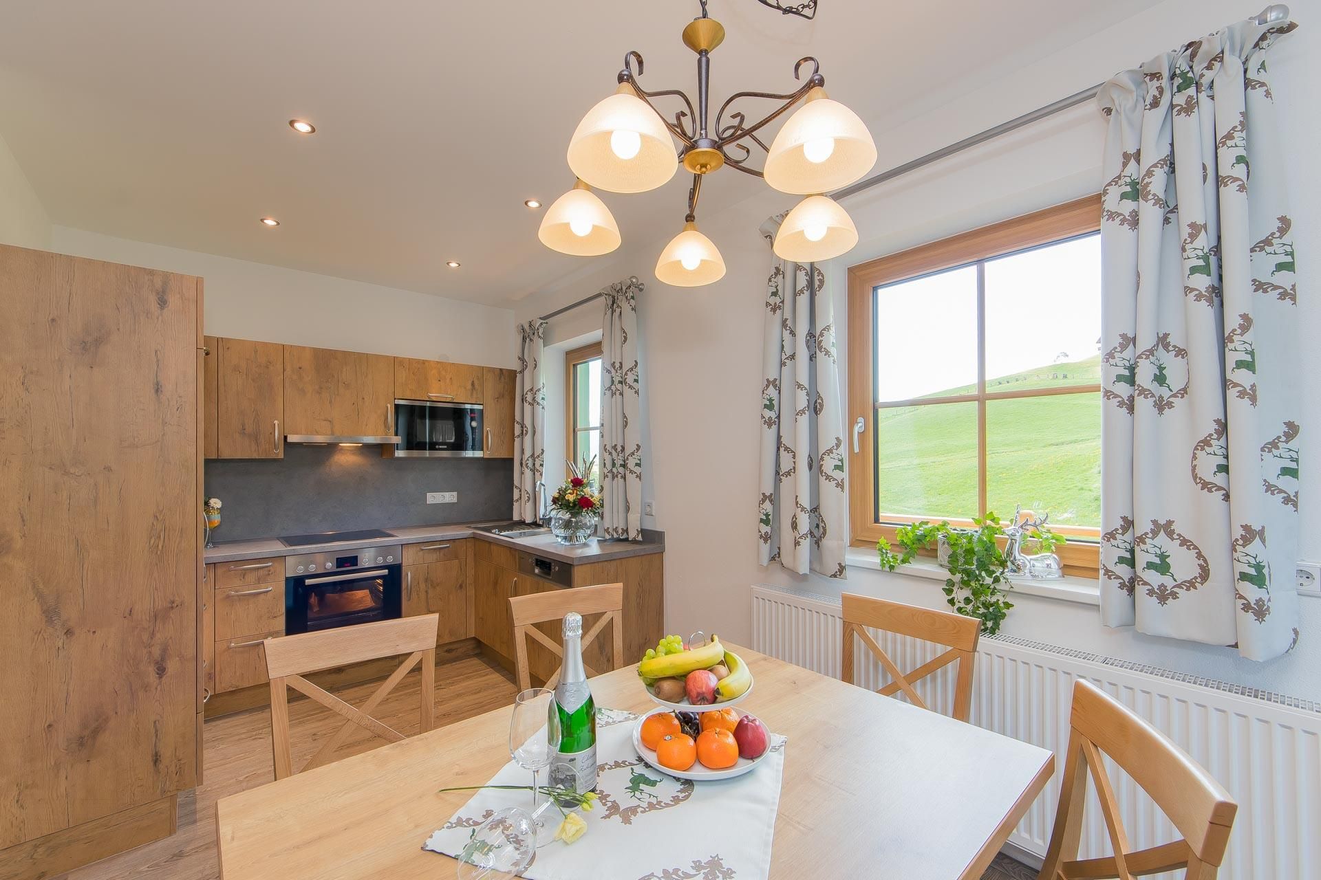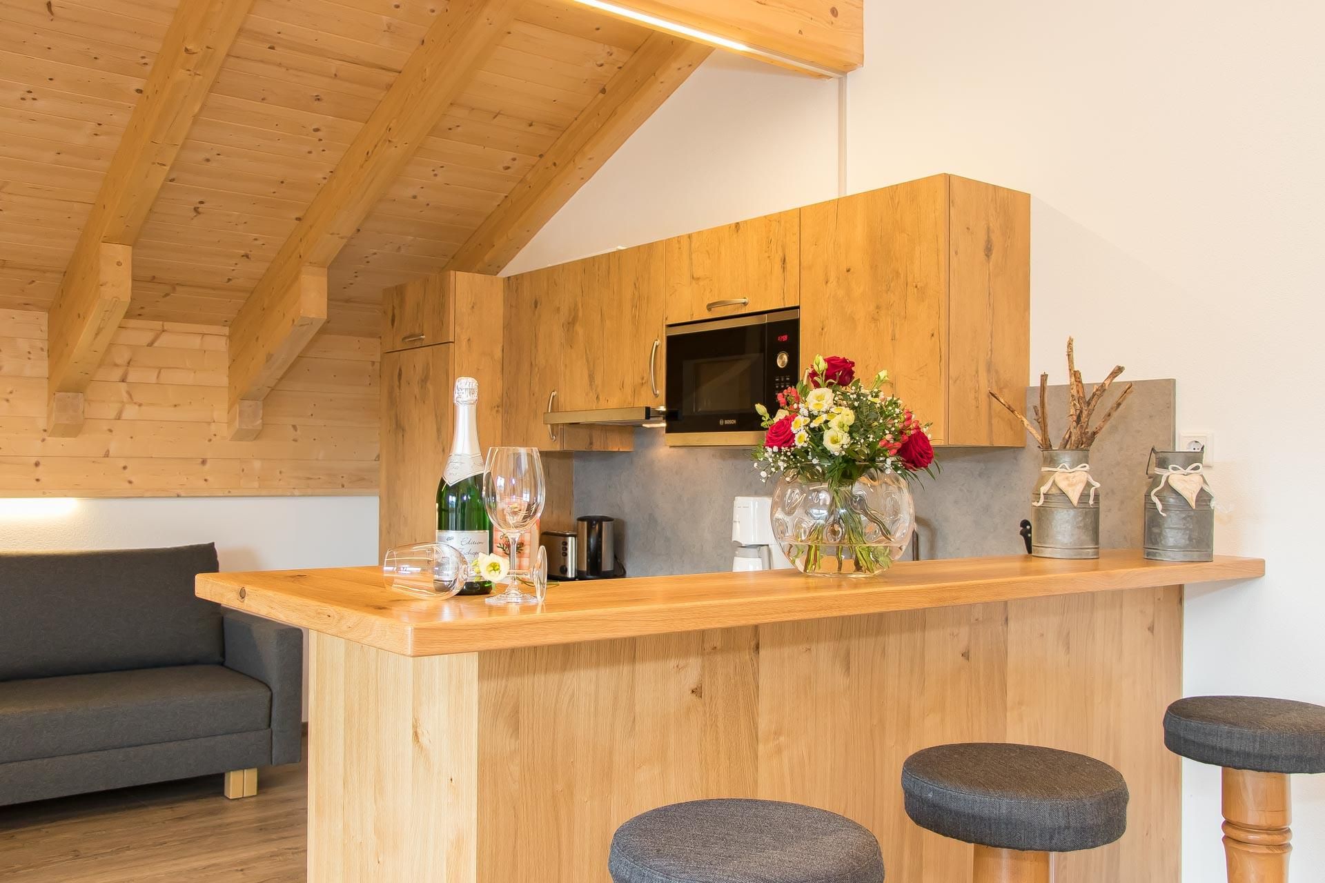 • voll ausgestattete Küche mit 4-Platten Cerankochfeld inkl. Backrohr, Geschirrspüler, Kühlschrank mit Gefrierfach, Mikrowelle, Wasserkocher, Toaster, Kaffeemaschine