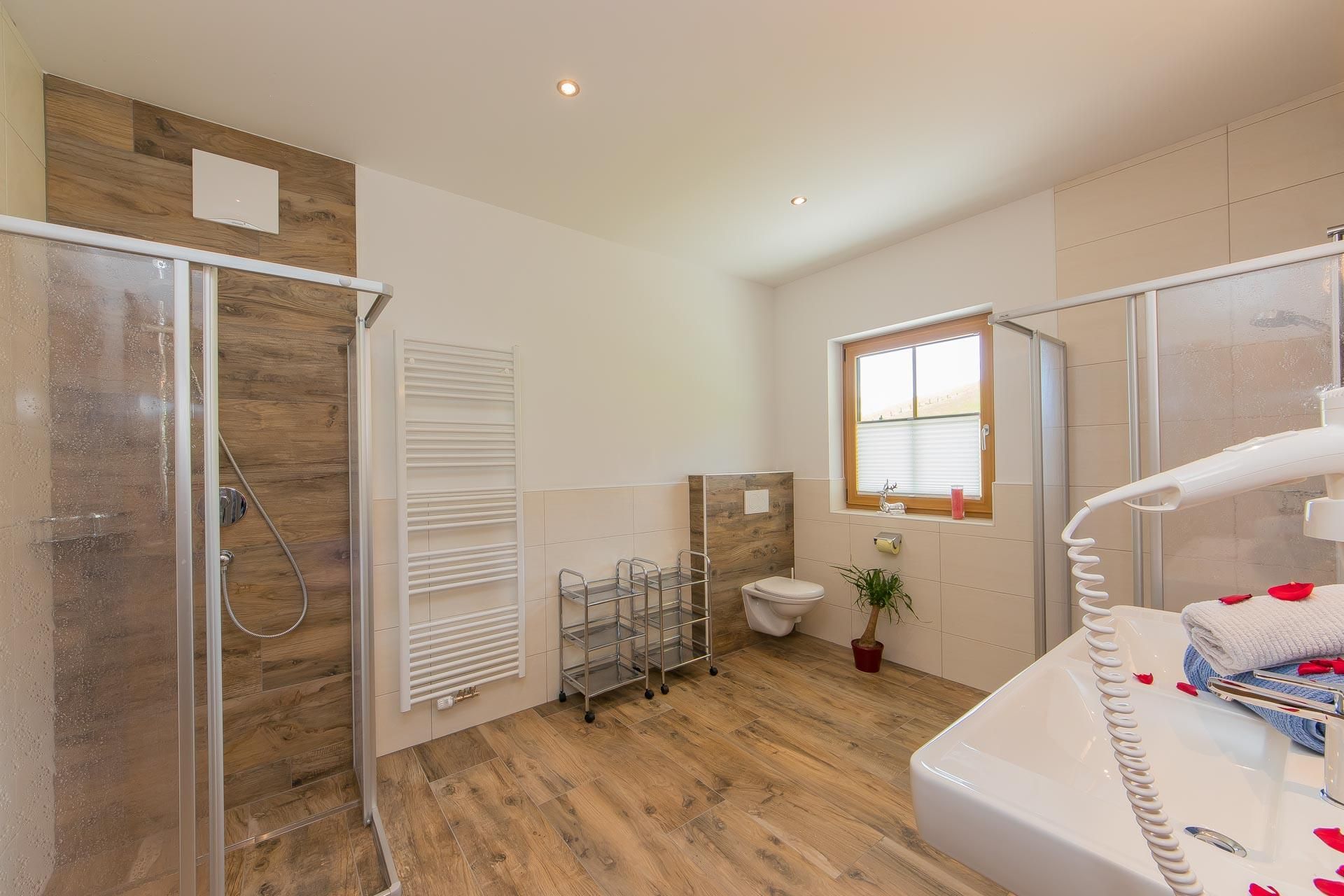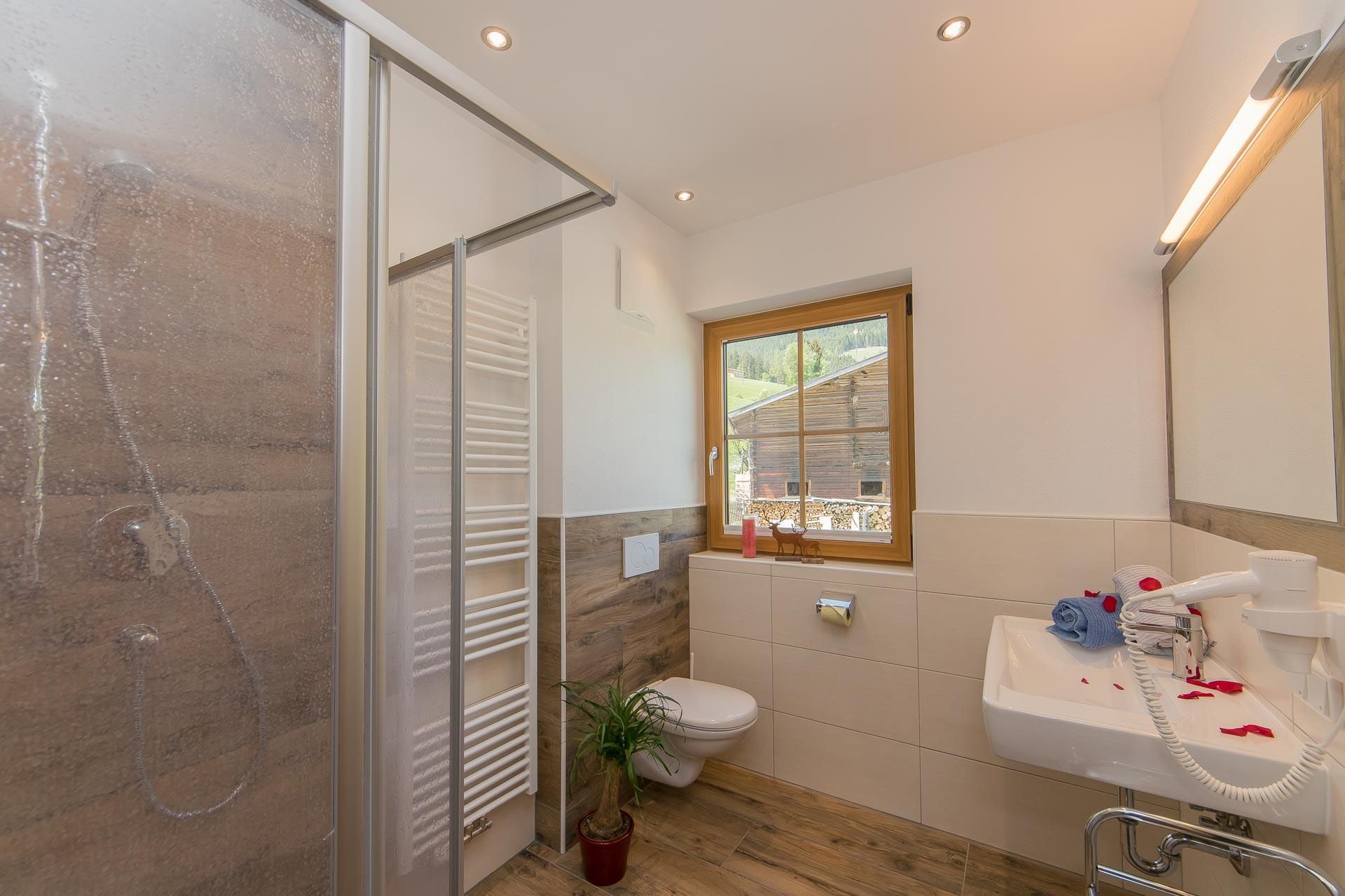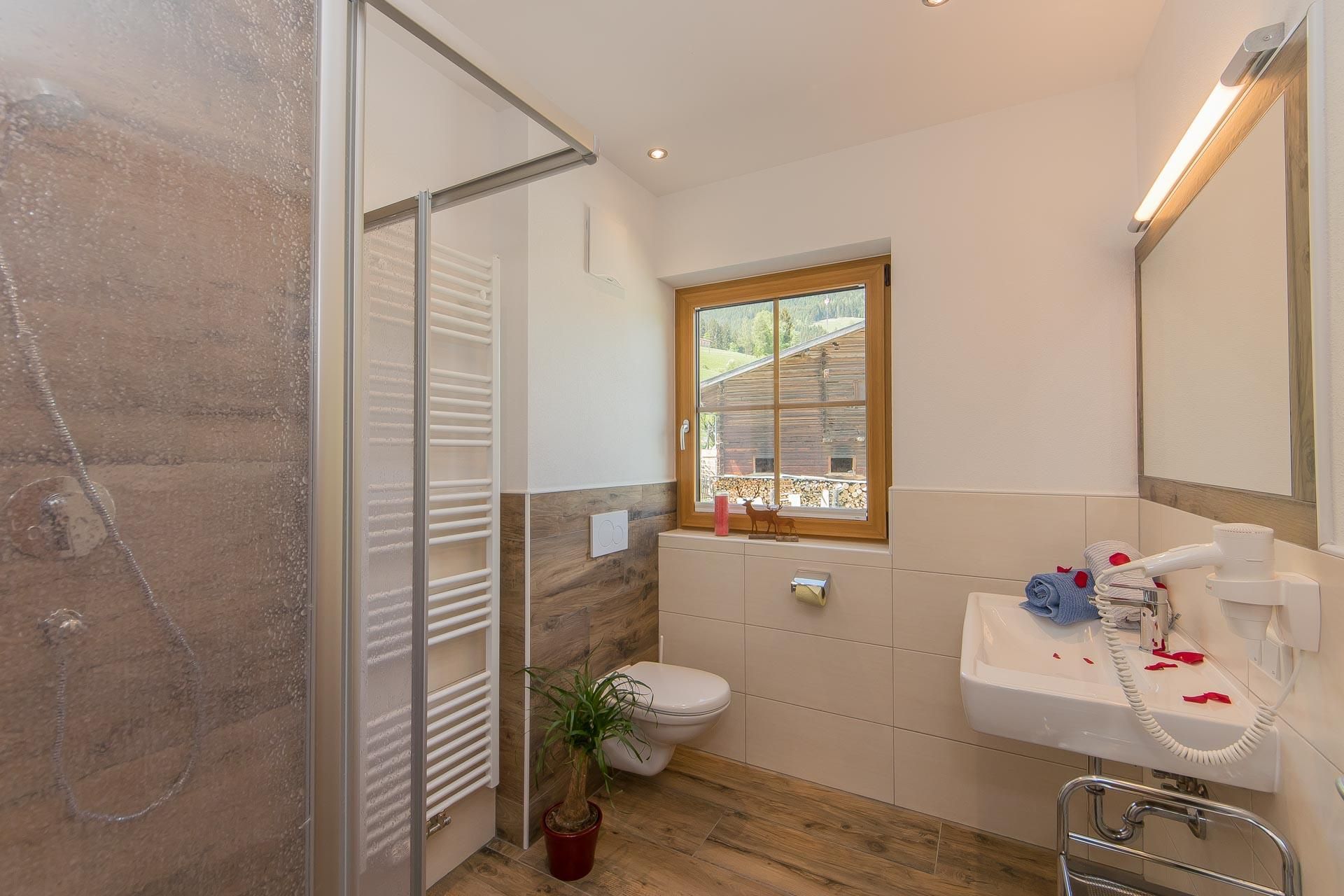 • Bad mit Dusche, WC, Handtuchwärmer & Fön