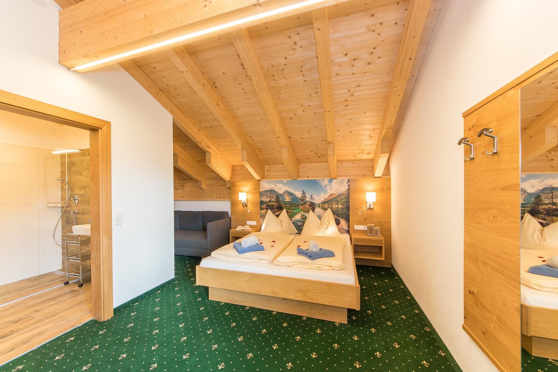 • 1 Doppelzimmer mit Ausziehcouch für 1 Person