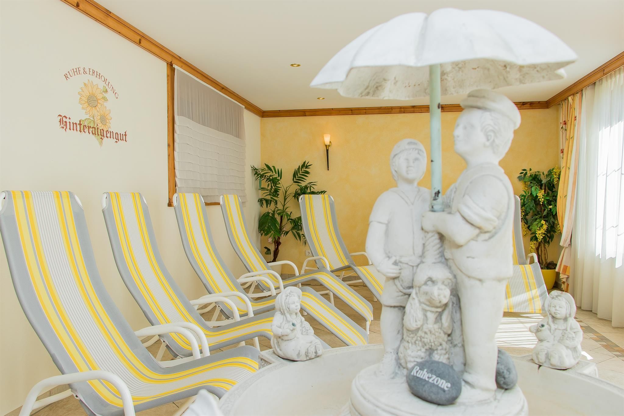 Das Hinteraigengut liegt ruhig und sonnig im Ortsteil Reitdorf. Badesee, Rad- und Wanderwege sind in der Nähe. Das Haus bietet Sauna, Dampfbad, Fitnessraum und eine Parkgarage. Im Sommer gibt es einen großen Kinderspielplatz, Streicheltiere .Die Zimmer werden mit einem hervorragenden Frühstücksbuffet angeboten. Die bestens ausgestatteten Appartements sind auch mit Frühstück buchbar. Sie können auch gerne am Abend in der Bauernstube nach Karte essen und den Abend gemütlich ausklingen lassen.