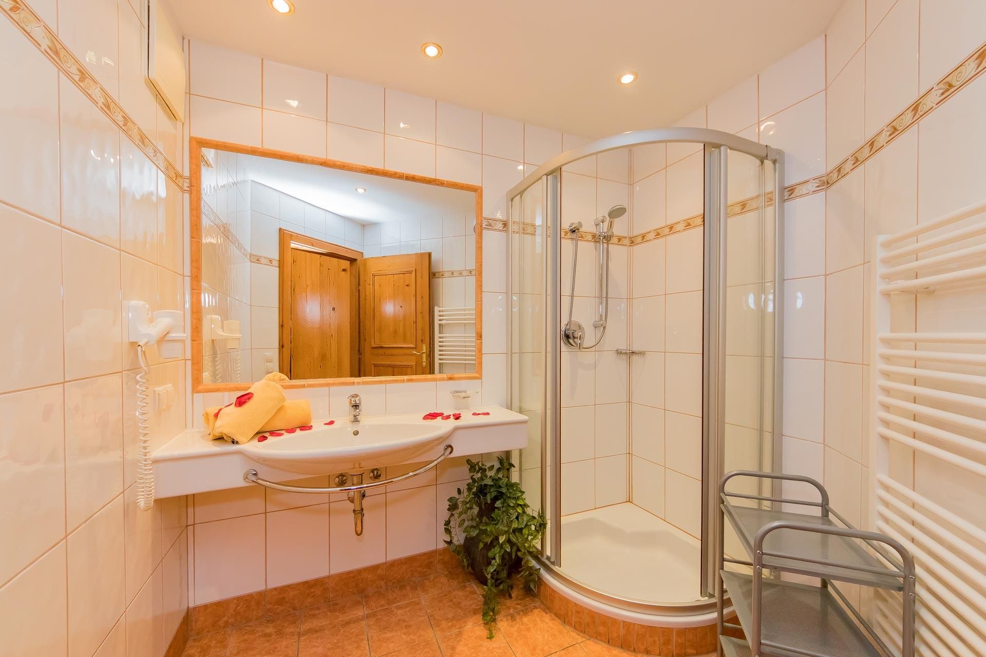 • Bad mit Dusche, Handtuchwärmer und Föhn