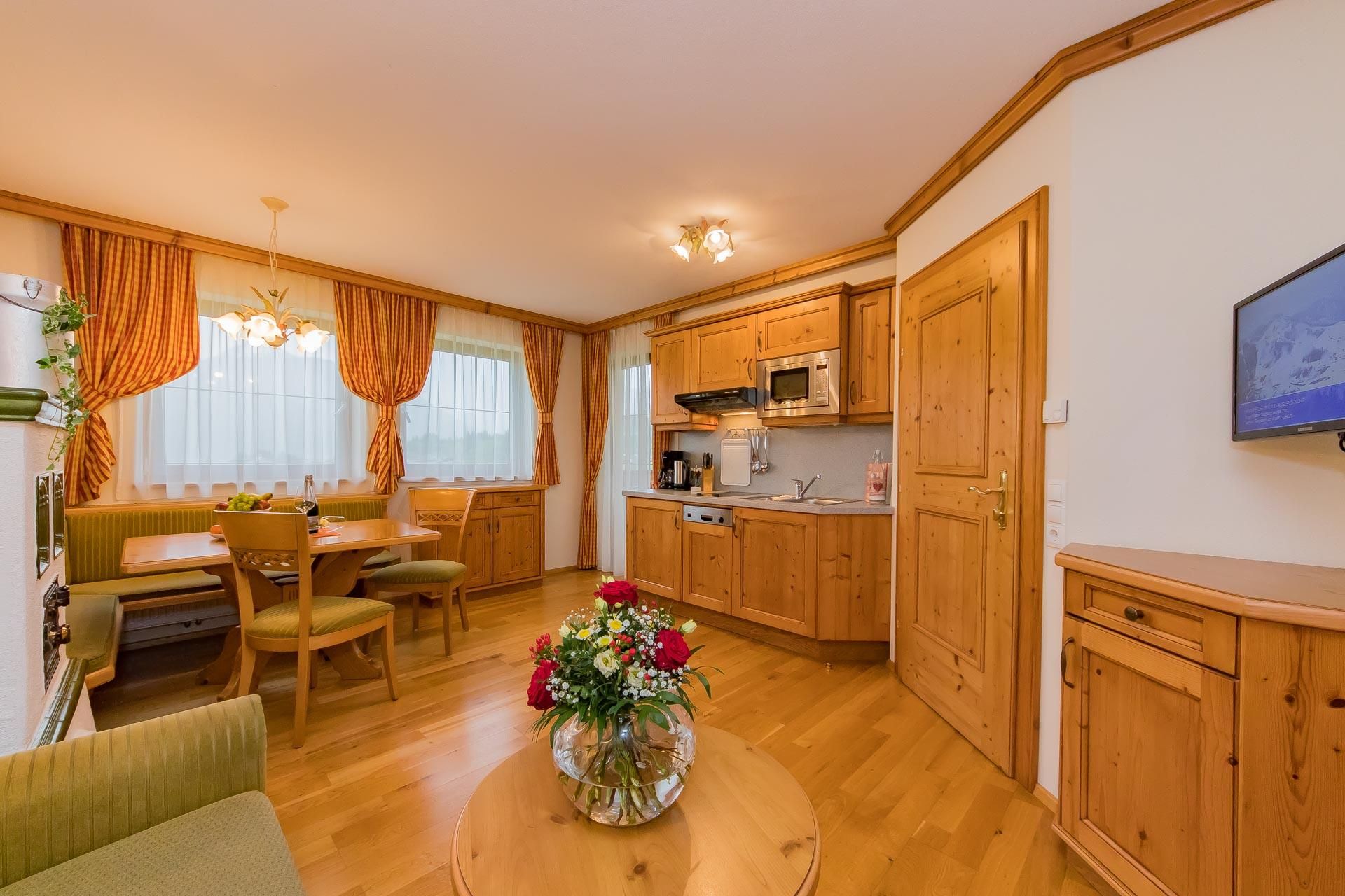 Das Hinteraigengut liegt ruhig und sonnig im Ortsteil Reitdorf. Skibushaltestelle, Loipe und Wanderwege sind in der Nähe. Das Haus bietet Sauna, Dampfbad, Fitnessraum und eine Parkgarage.  Die Zimmer werden mit einem hervorragenden Frühstücksbuffet angeboten. Die bestens ausgestatteten Appartements sind auch mit Frühstück buchbar. Sie können auch gerne am Abend in der Bauernstube nach Karte essen und den Abend gemütlich ausklingen lassen.