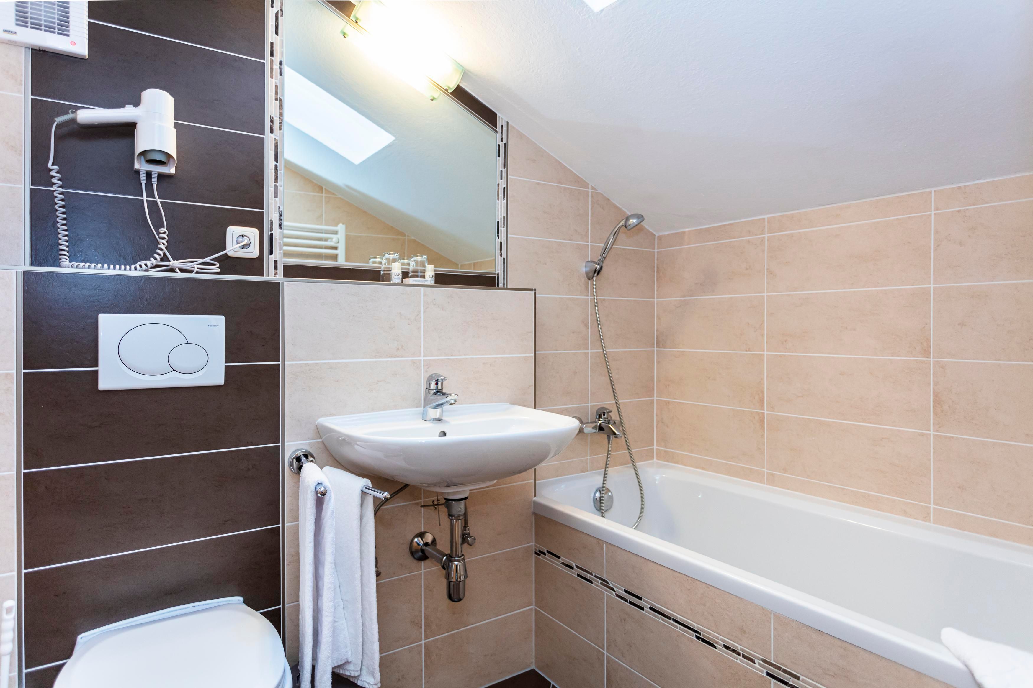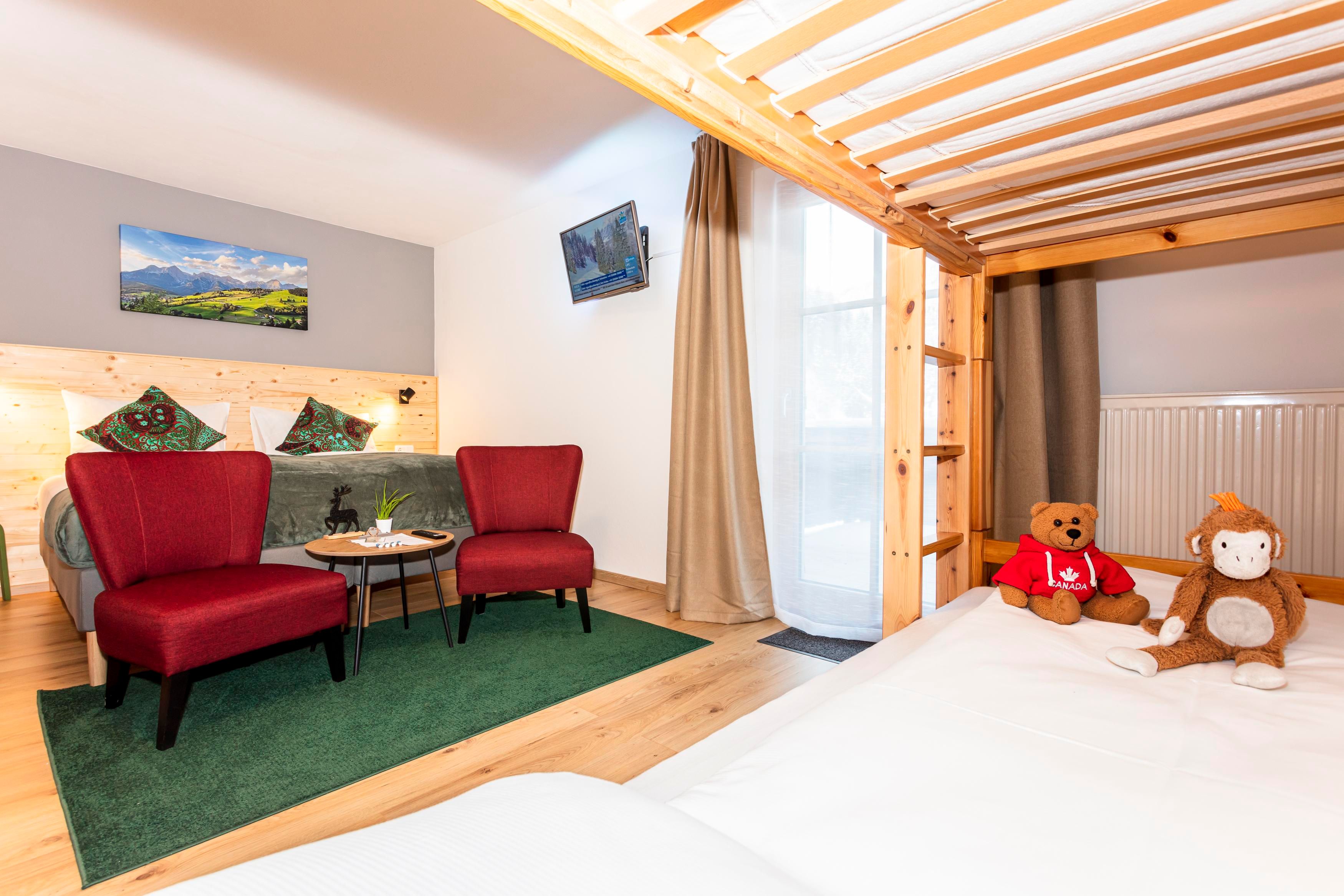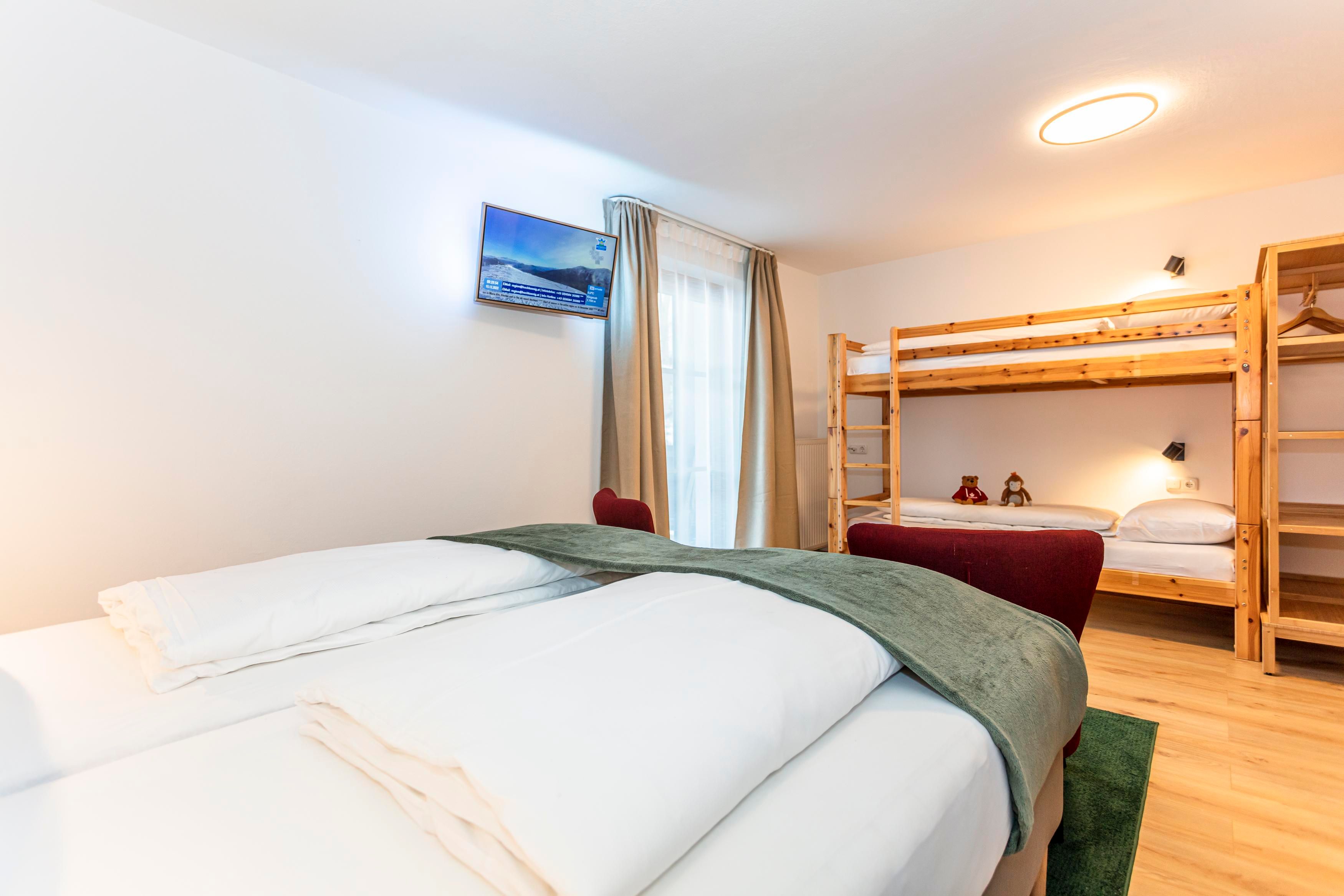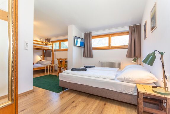 Familienzimmer mit Stockbett, Dusche und WC, Kabel-TV und W-Lan.