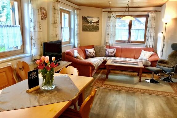 Geräumige Gartenwohnung für 2 - 5 Personen (ca. 92 m²), liegt im Ergeschoss mit separatem Eingang.