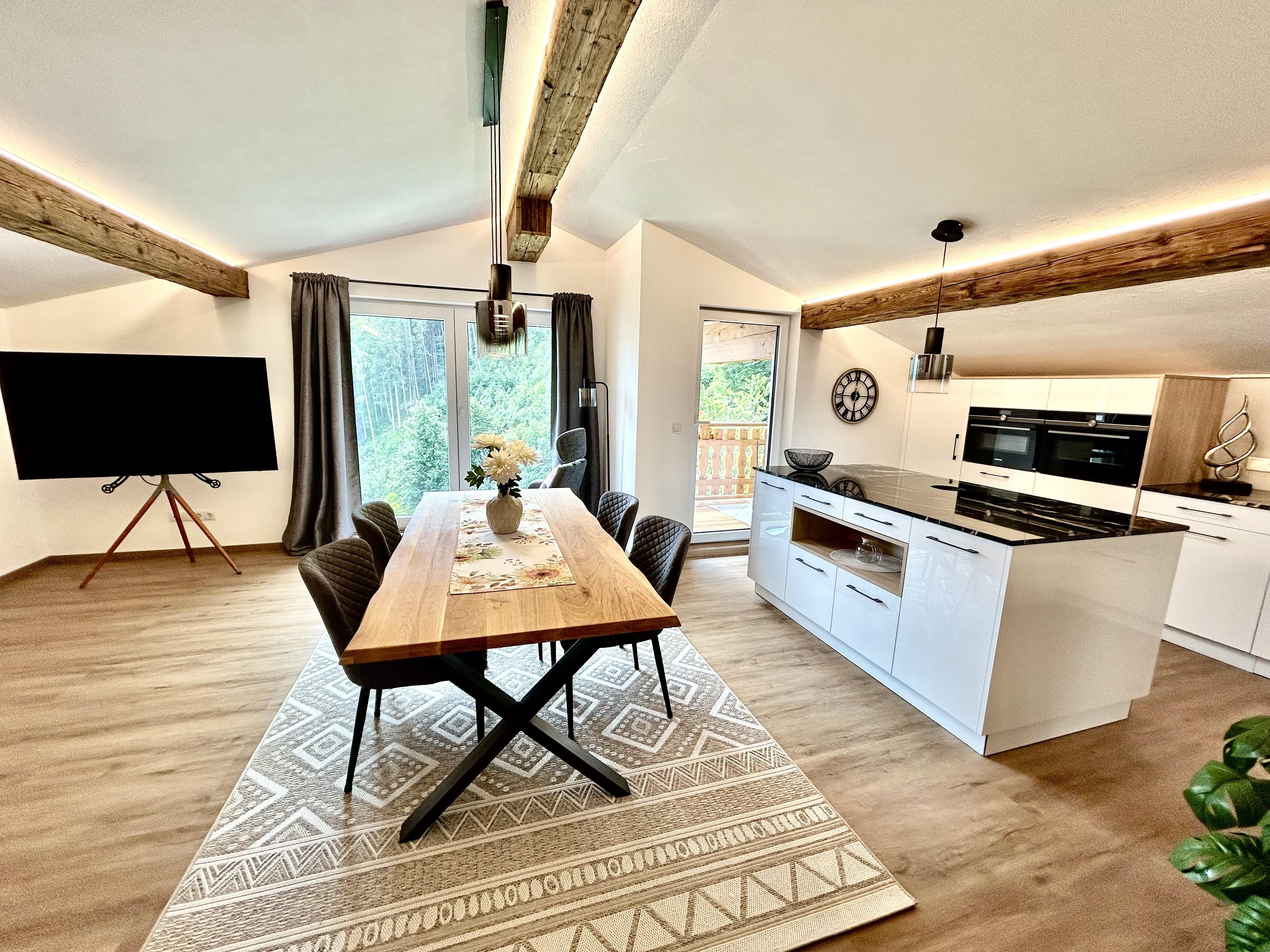Großzügige Panoramawohnung für 2 - 3 Personen (ca. 92 m²), liegt im 2. Obergeschoss mit Stufen erreichbar (kein Aufzug vorhanden)