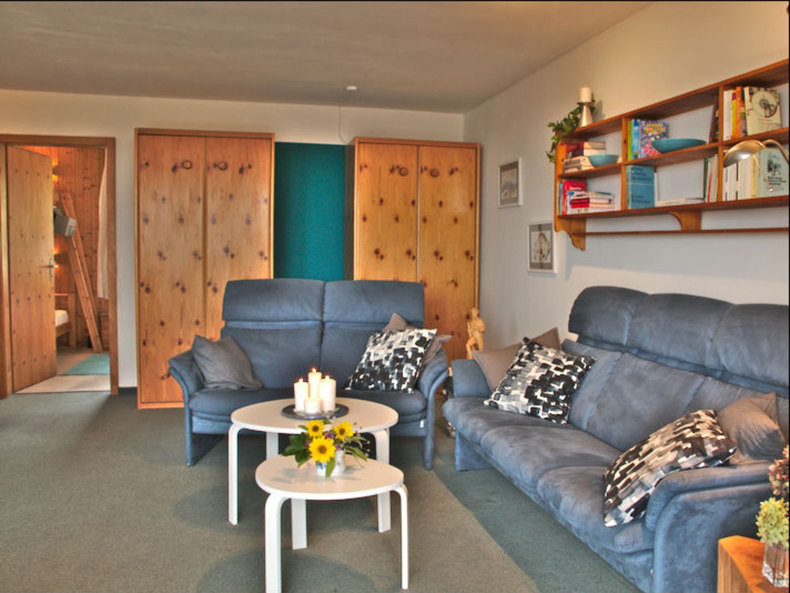 2.5-Zimmer-Ferienwohnung(70m2), biete platz für max. 4 Personen. Schlafzimmer mit 1.60 m x 2.00m Doppelbett, zwei Schrankbetten (je 0,90m x 1,90m) im Wohnbereich. TV, Stereoanlage. Voll eingerichtete Küche mit Kühlschrank, Herd, Backofen und weiteren Küchengeräten (Toaster, Kaffeemaschine, Fondueset, Mikrowelle usw.). Waschküche mit Waschmaschine/Wäschetrockner/Trockenraum. Terrasse mit unverbautem Blick ins Rheintal inklusive Liegewiese, Gartenmöbeln, Sonnenschirm usw. 1 Tiefgaragenplatz ist vorhanden und inbegriffen.