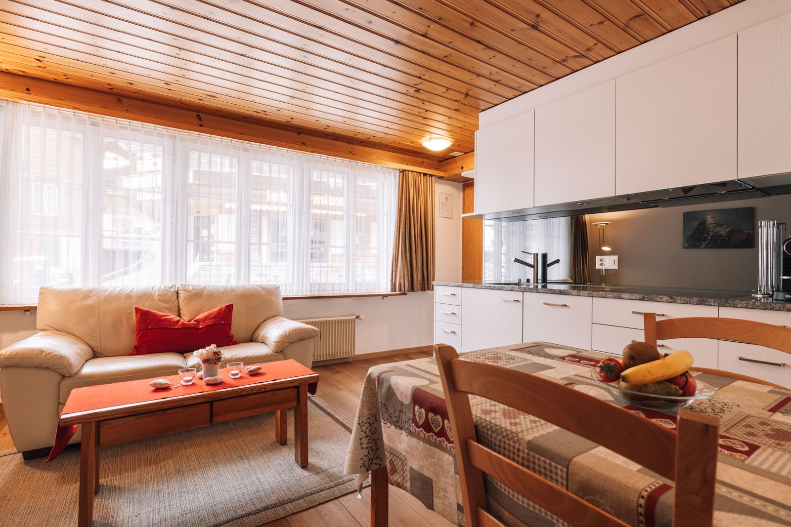 Chalet an zentraler Lage, 50 m von der Bushaltestelle entfernt. Ganzjährige Zufahrt mit Parkplatz. Auf Wunsch mit Halbpension, Frühstück im Hotel Gletschergarten. Nichtraucherwohnung. Haustiere auf Anfrage erlaubt. Ladestation für Elektroautos.