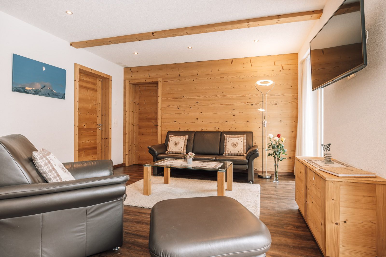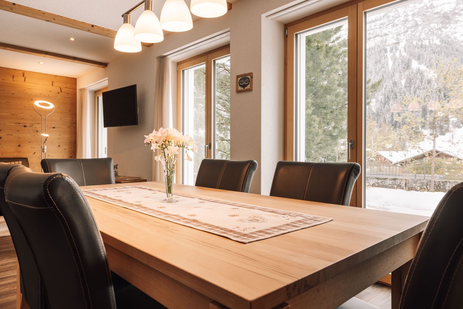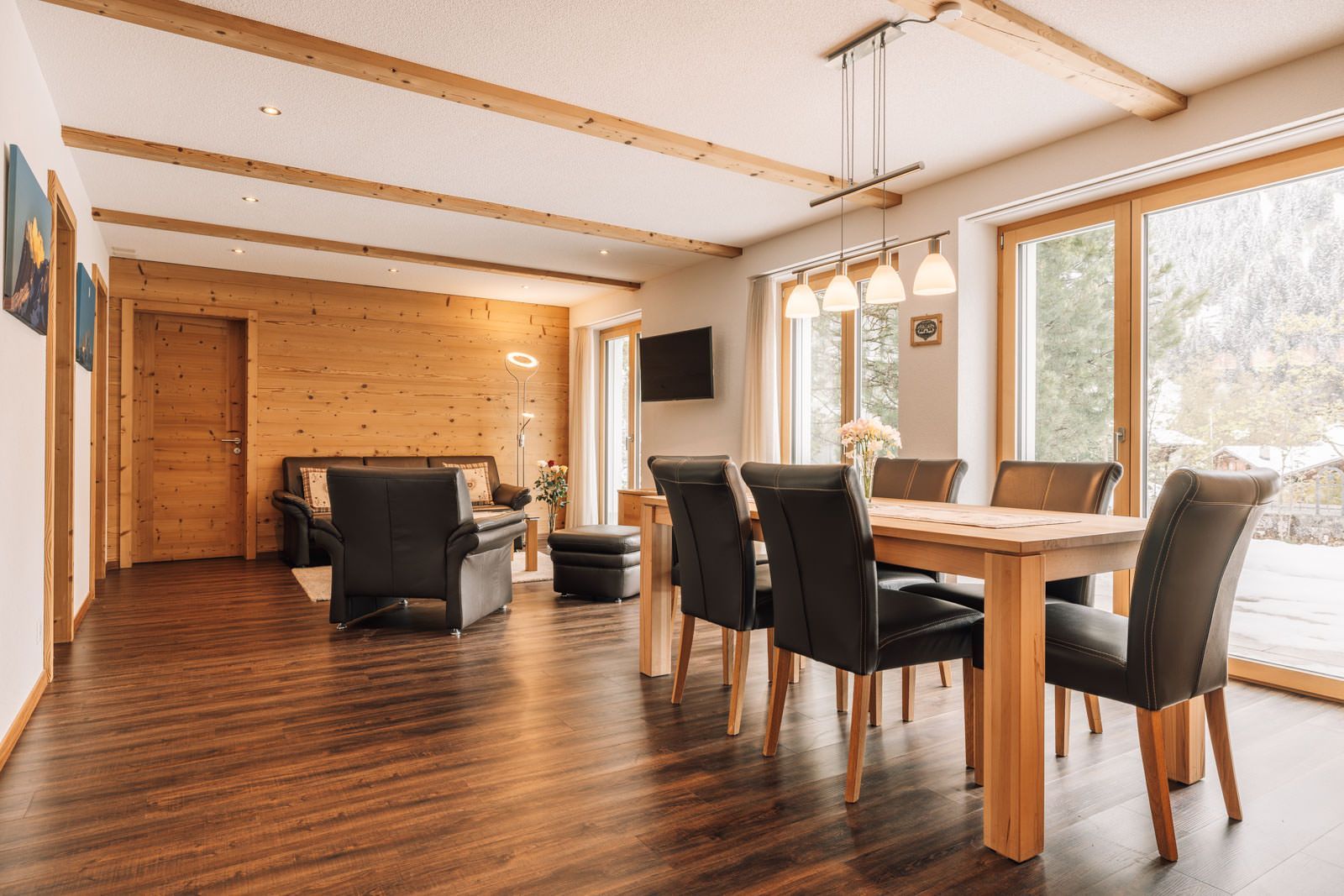 Chalet an zentraler Lage, 50 m von der Bushaltestelle entfernt. Ganzjährige Zufahrt mit Parkplatz. Auf Wunsch mit Halbpension, Frühstück im Hotel Gletschergarten. Nichtraucherwohnung. Haustiere auf Anfrage erlaubt. Ladestation für Elektroautos.