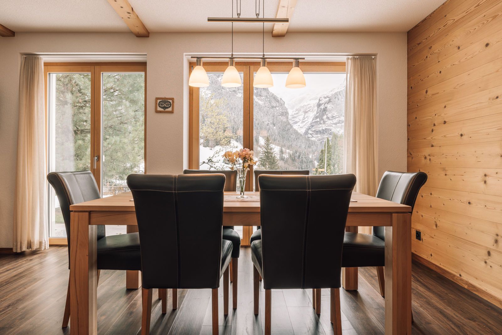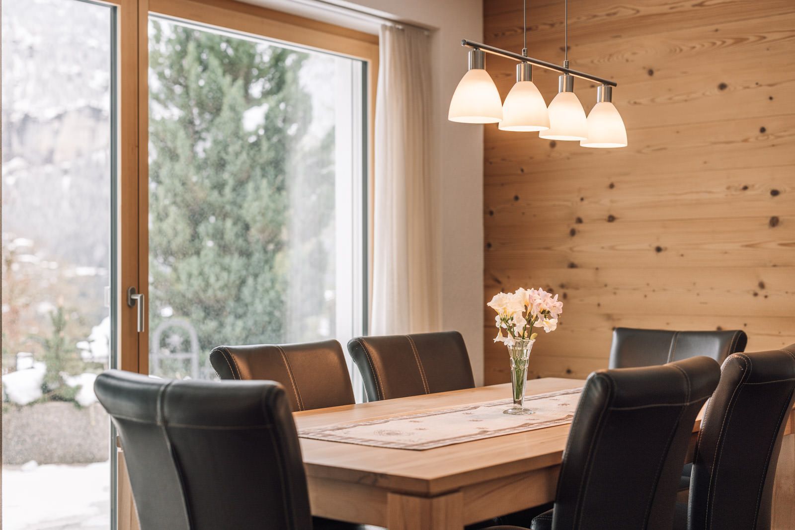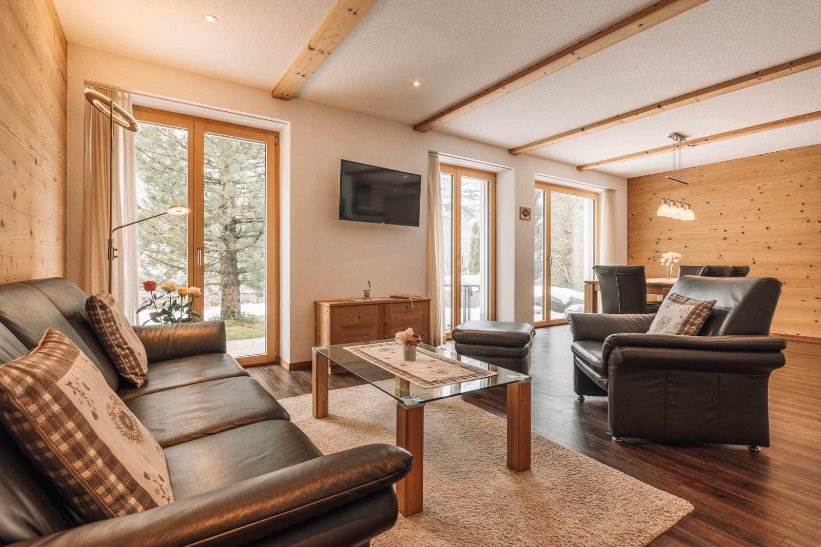 Chalet an zentraler Lage, 50 m von der Bushaltestelle entfernt. Ganzjährige Zufahrt mit Parkplatz. Auf Wunsch mit Halbpension, Frühstück im Hotel Gletschergarten. Nichtraucherwohnung. Haustiere auf Anfrage erlaubt. Ladestation für Elektroautos.