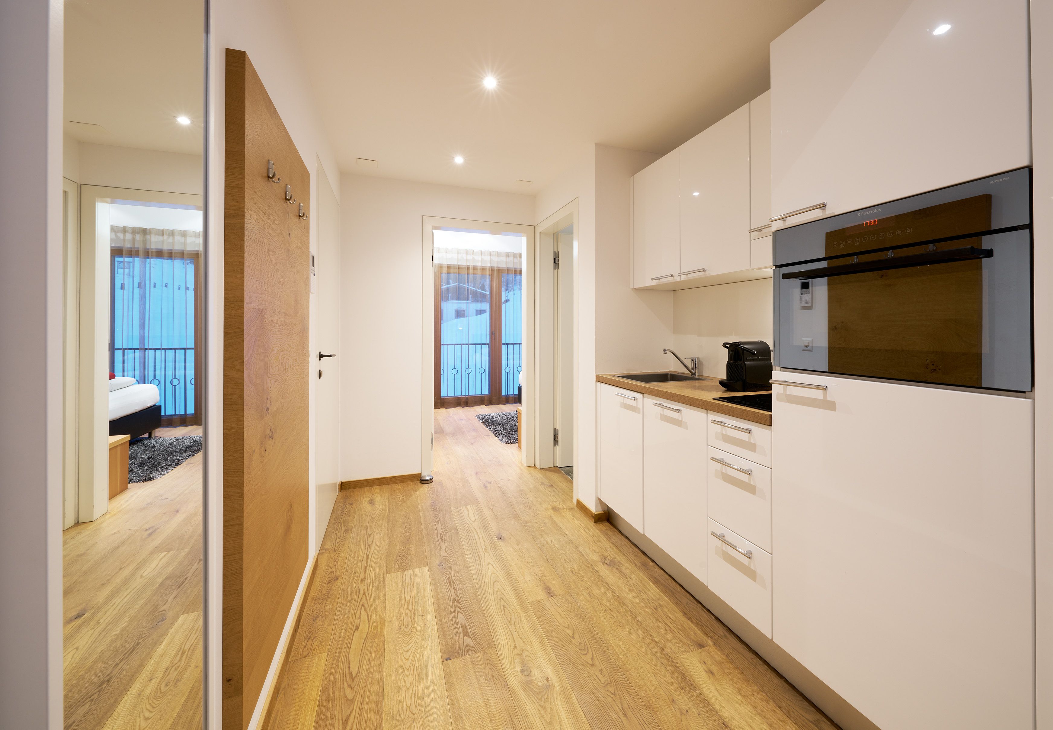 Das grosszügige Apartment mit Balkon verfügt über einen nach Südwesten ausgerichteten Wohnbereich mit Esstisch für bis zu 4 Personen. Eine kleine Küche mit modernen Kochgeräten macht Lust zum Kochen. Ein separates Schlafzimmer mit kuschligen Betten lädt zum Träumen ein und ein Wohlfühlbadezimmer mit Badewanne, Dusche und WC bietet Raum für Entspannung.