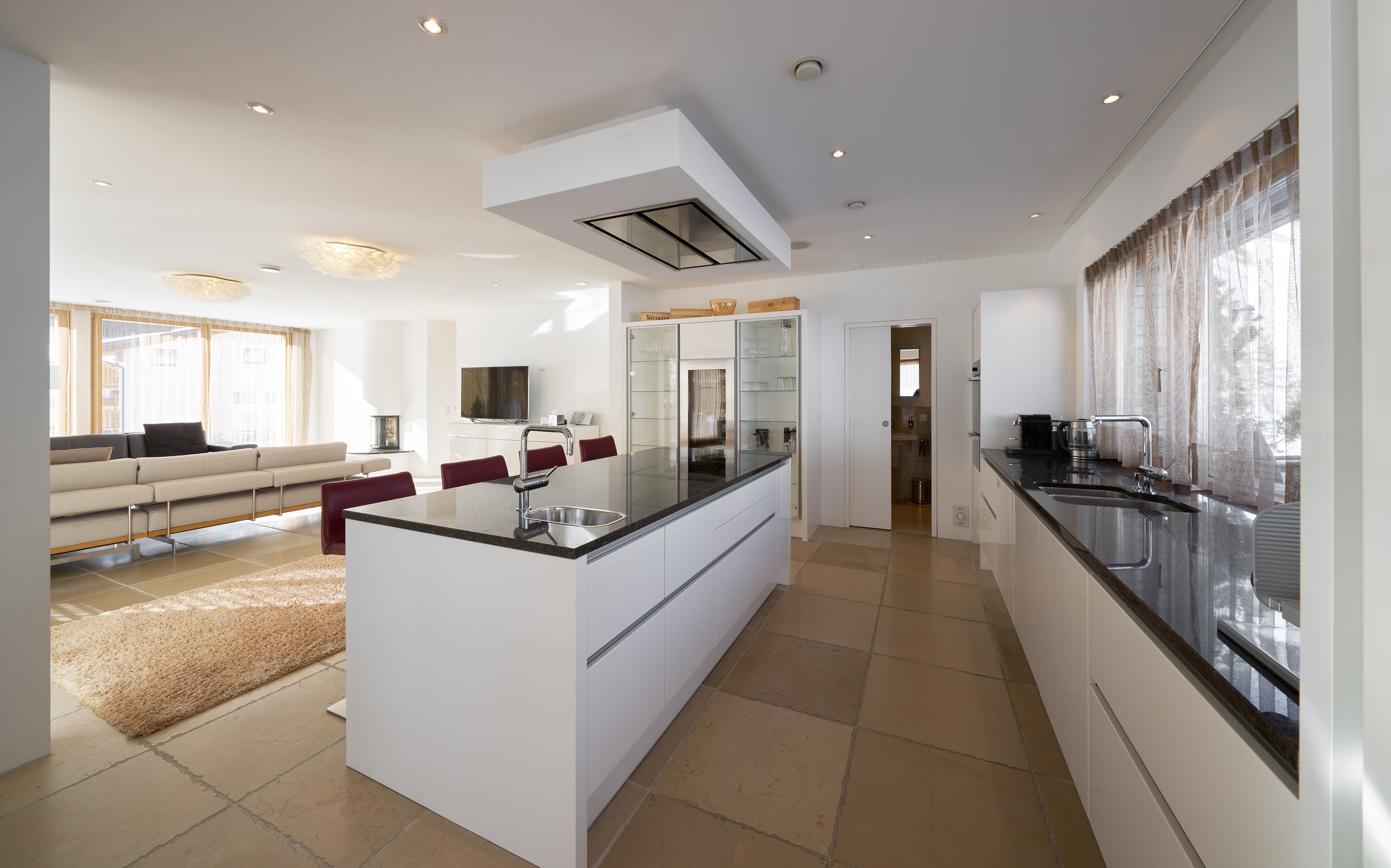 Das luxuriöse Apartment mit Terrasse verfügt über einen Wintergarten mit Esstisch für bis zu 10 Personen, grosszügiger Küche mit Kochinsel, modernen Kochgeräten, Weinklimaschrank, Bar mit 32 TV/Radio sowie einer Lounge mit Kamin und 50 TV/Radio. Zwei separate Schlafzimmer mit kuschligen Betten laden zum Träumen ein und ein Wohlfühlbadezimmer mit Badewanne, Dusche und WC bietet Raum für Entspannung.