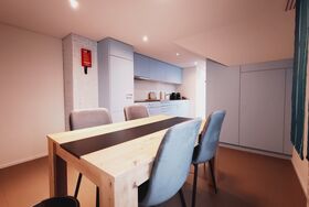 Im Inneren der Wohnung warten drei sorgfältig abdunkelbare Schlafzimmer für erholsame Nächte nach langen Entdeckungstouren. Für gemeinschaftliche Momente steht eine gut ausgestattete Küche mit Kapsel-Kaffeemaschine, Spülmaschine und Wasserkocher bereit. Praktische Annehmlichkeiten wie eine zur gemeinschaftlichen Nutzung bestimmte Waschmaschine und Wäschetrockner im Gebäude sowie eine Regendusche im Badezimmer sorgen für zusätzlichen Komfort während Ihres Aufenthalts.