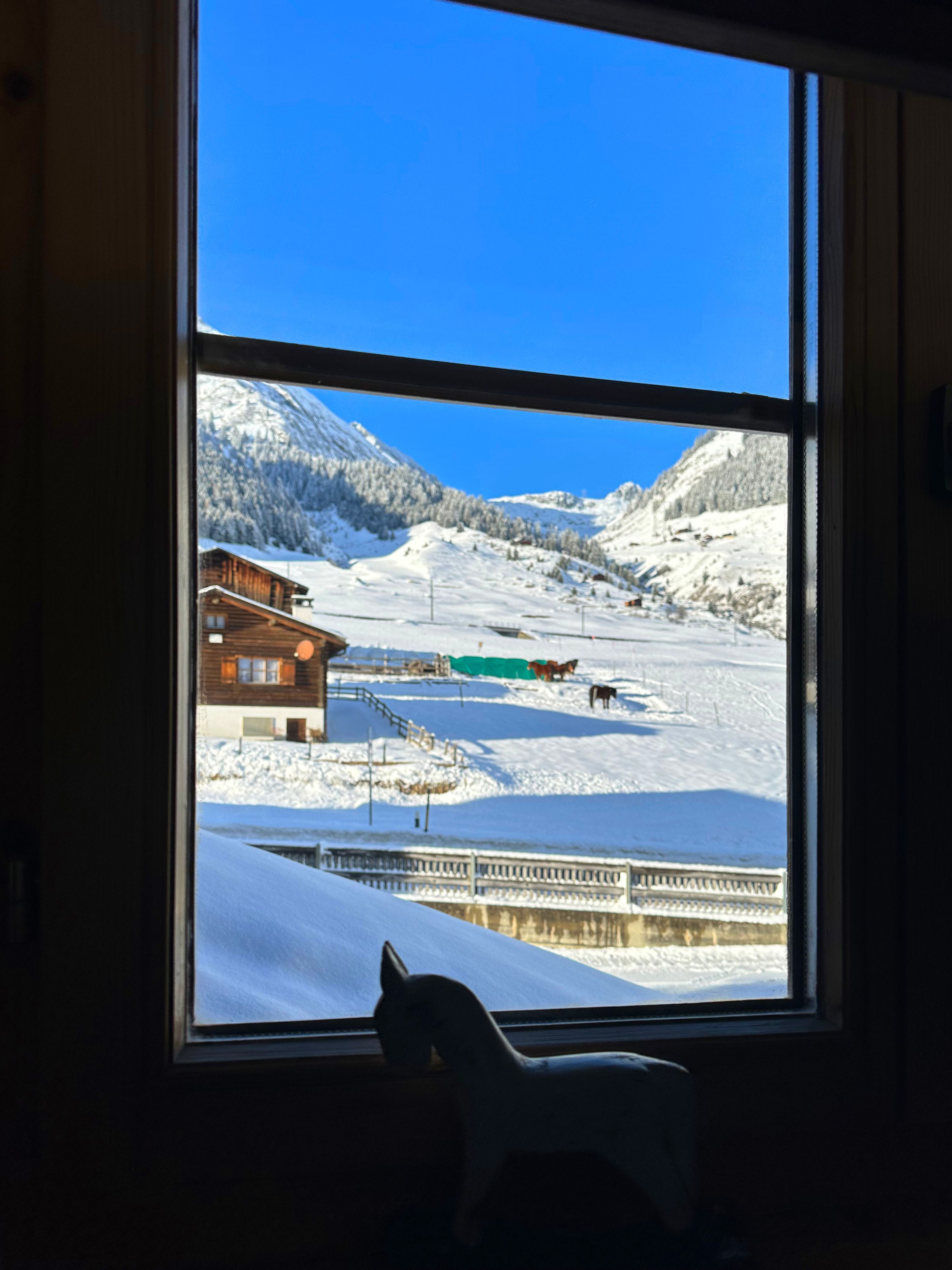 Der Außenbereich ergänzt das Wohnerlebnis mit einem einladenden Balkon, mit einem gigantischem Ausblick auf die majestätischen Berge und die Langlauf-Loipe.