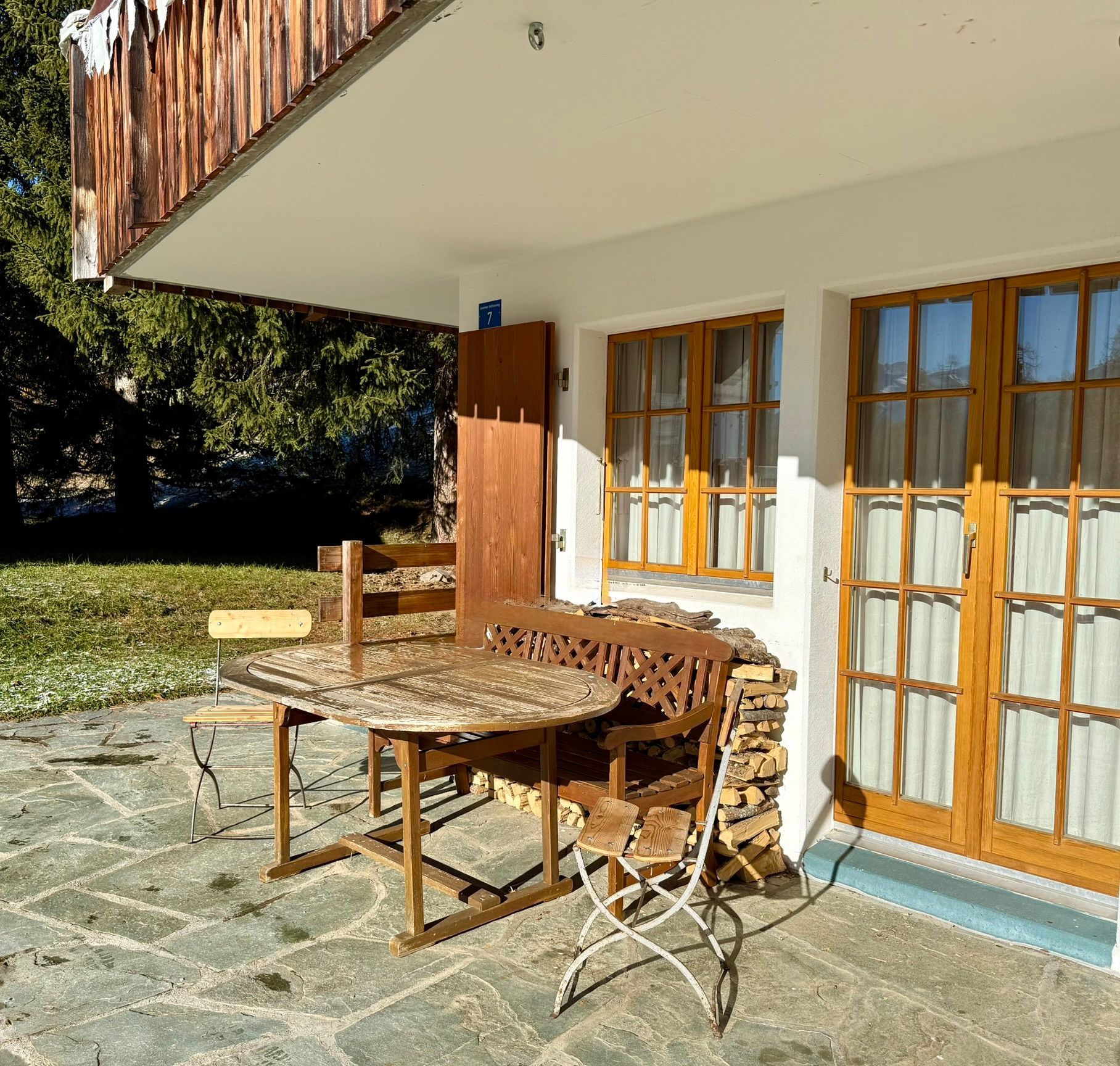 Der Außenbereich des Hauses lädt mit seiner Terrasse und einem Balkon zum Verweilen in der frischen Bergluft ein. Der zur alleinigen Nutzung gedachte Garten bietet eine private grüne Oase, die zum Entspannen unter freiem Himmel einlädt. Ein überdachter Fahrradabstellplatz steht ebenfalls zur Verfügung, ideal für Gäste, die die malerische Umgebung gerne auf zwei Rädern erkunden möchten.