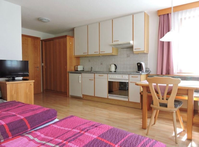 Unsere Studios sind mit je einem Wohn/Schlafraum mit zwei Einzelbetten, Küchenkombination mit Backofen, Geschirrspüler und Nespresso Kaffeemaschine (Kapseln) Eckbank-Essecke, Garderobe, Dusche/WC, SAT-TV und Radio ausgestattet.