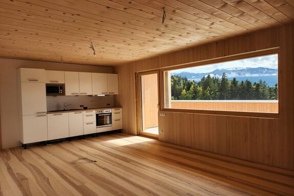 Moderner Wohnkomfort mit Herz – warm, hell, freundlich und durchdacht gestaltet. Perfekt, um sich nach einem Tag im Schnee von den lichtdurchfluteten Räumen aufzuwärmen und sich vom Blick ins Tal, mit den verschneiten Hügeln des Bregenzerwaldes, einfangen zu lassen. Einfach magisch!