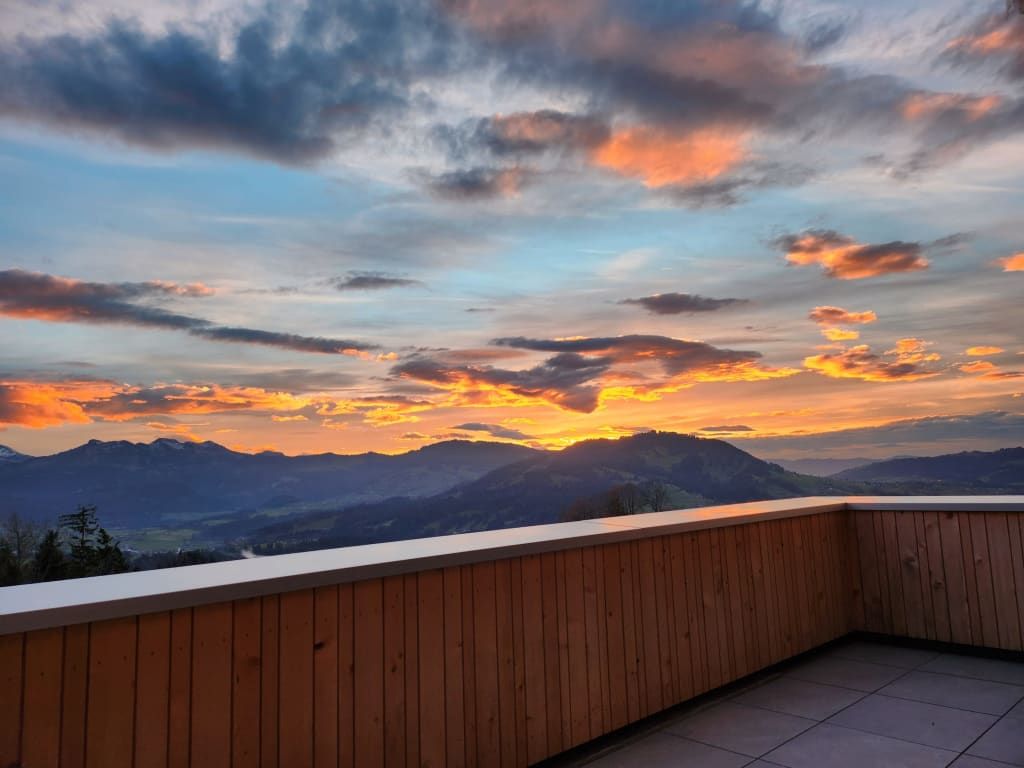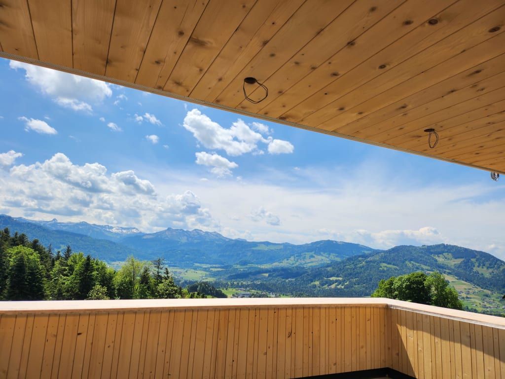 Willkommen in der neu erbauten Ferienwohnung Mittagsspitz, wo der Name Programm ist: Ein atemberaubender Ausblick von Ihrer privaten Panoramaterrasse auf sanfte Wiesen, dichte Wälder und die majestätische Berglandschaft mit der Mittagsspitze erwartet Sie.