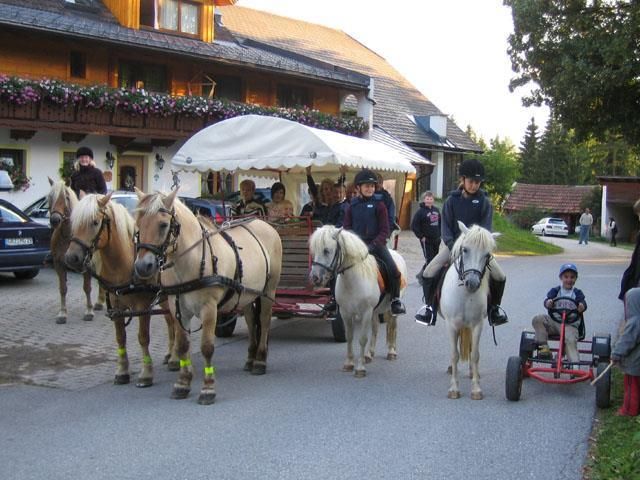 Am Bauernhof Steinbauer ist zu jeder Jahreszeit eine Menge geboten. Vor allem für Familien und Kinder gibt es hier viel zu entdecken. Angefangen vom großen Spielplatz mit Turm, Rutsche, Trampolin, Sandkiste, Tischtennis etc. über unser kleines Gartenhäuschen oder die Go-Karts, sowie einige Wiesen zum Austoben, Ballspielen oder Schneemannbauen. Außerdem haben wir auch ein Spielzimmer und jede Menge Bücher, Karten und Gesellschaftsspiele, sowie Video und W-Lan falls das Wetter einmal nicht so mitspielt. Gerne können Kinder und Erwachsene auch bei den täglichen Stallarbeiten helfen und sich um unsere vielen tierischen Hofbewohner wie Katzen, Kaninchen, Hühner, Enten, Kühe, Kälber oder Schweine kümmern. Unsere 4 Ponys und 2 Haflinger Pferde freuen sich, wenn sie täglich gestriegelt werden. Am hauseigenen Reitplatz oder auf den umliegenden Reitwegen können sie auch gerne ausgeritten werden. Ein besonderes Highlight ist natürlich eine Pferdeschlitten- bzw. Kutschenfahrt mit dem Chef des Hauses persönlich. Sie sehen, beim Steinbauer ist wirklich etwas für die ganze Familie geboten.