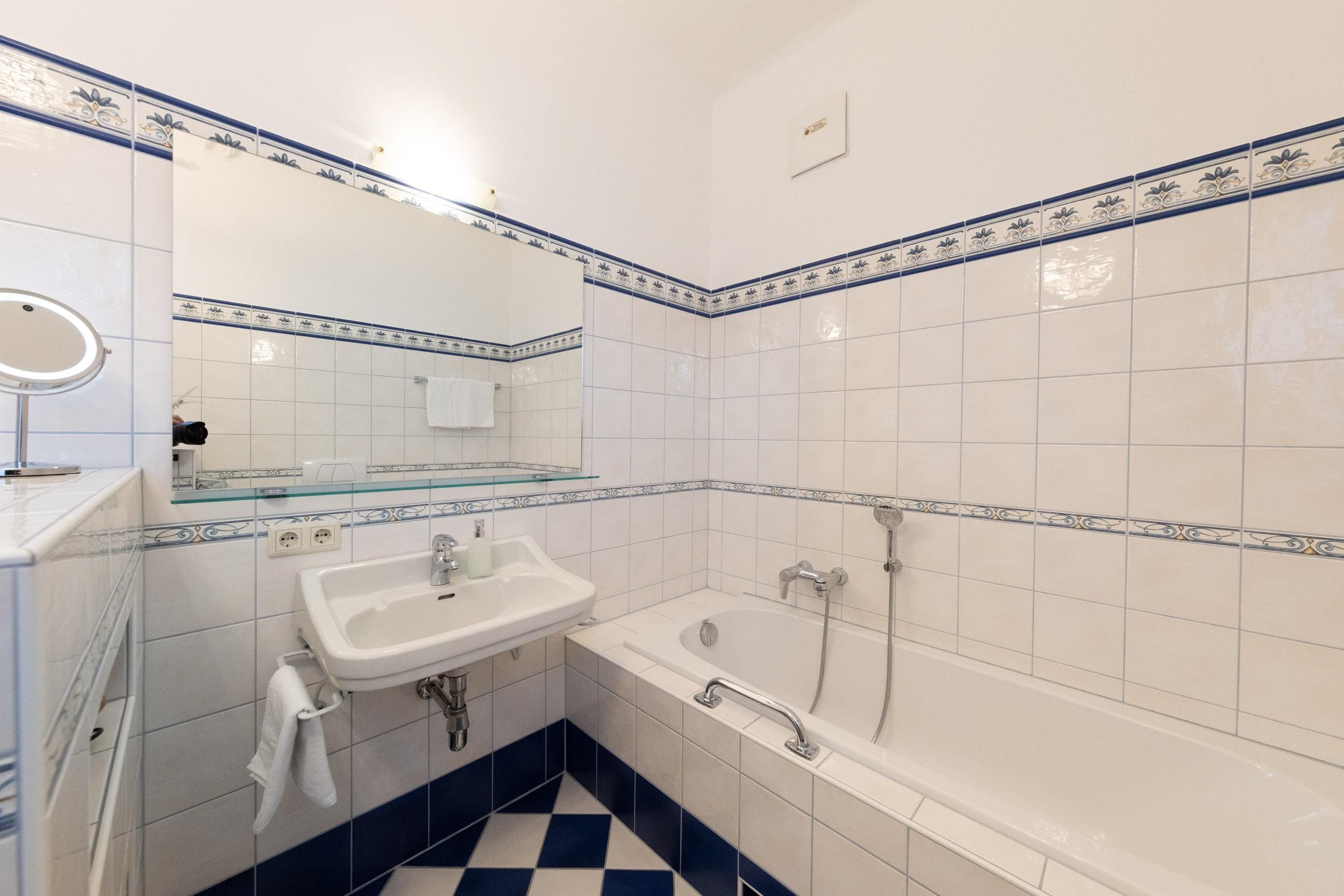 Das lichtdurchflutete Appartement Hochparterre bietet auf 95 m² Platz für bis zu 4 Personen. Zwei Schlafzimmer mit Flachbild-TV, ein Badezimmer mit Badewanne, Dusche und WC, ein separates WC, eine voll ausgestattete Küche mit Backofen, E-Herd, Geschirrspüler, Kühlschrank mit kleinem Gefrierfach, Mikrowelle, Toaster und Nespresso Maschine, ein gemütliches Wohnzimmer mit Flachbild-TV sowie der eigene Zugang über die Veranda schaffen ein stilvolles Zuhause mit dem besonderen Charme der historischen Villa Stephanie.