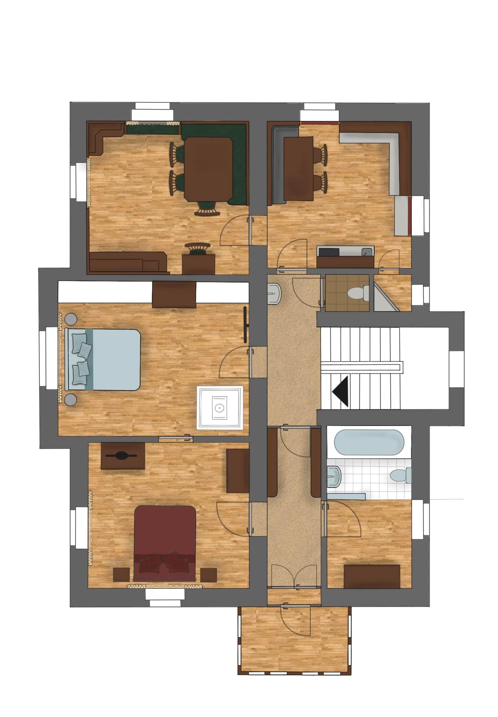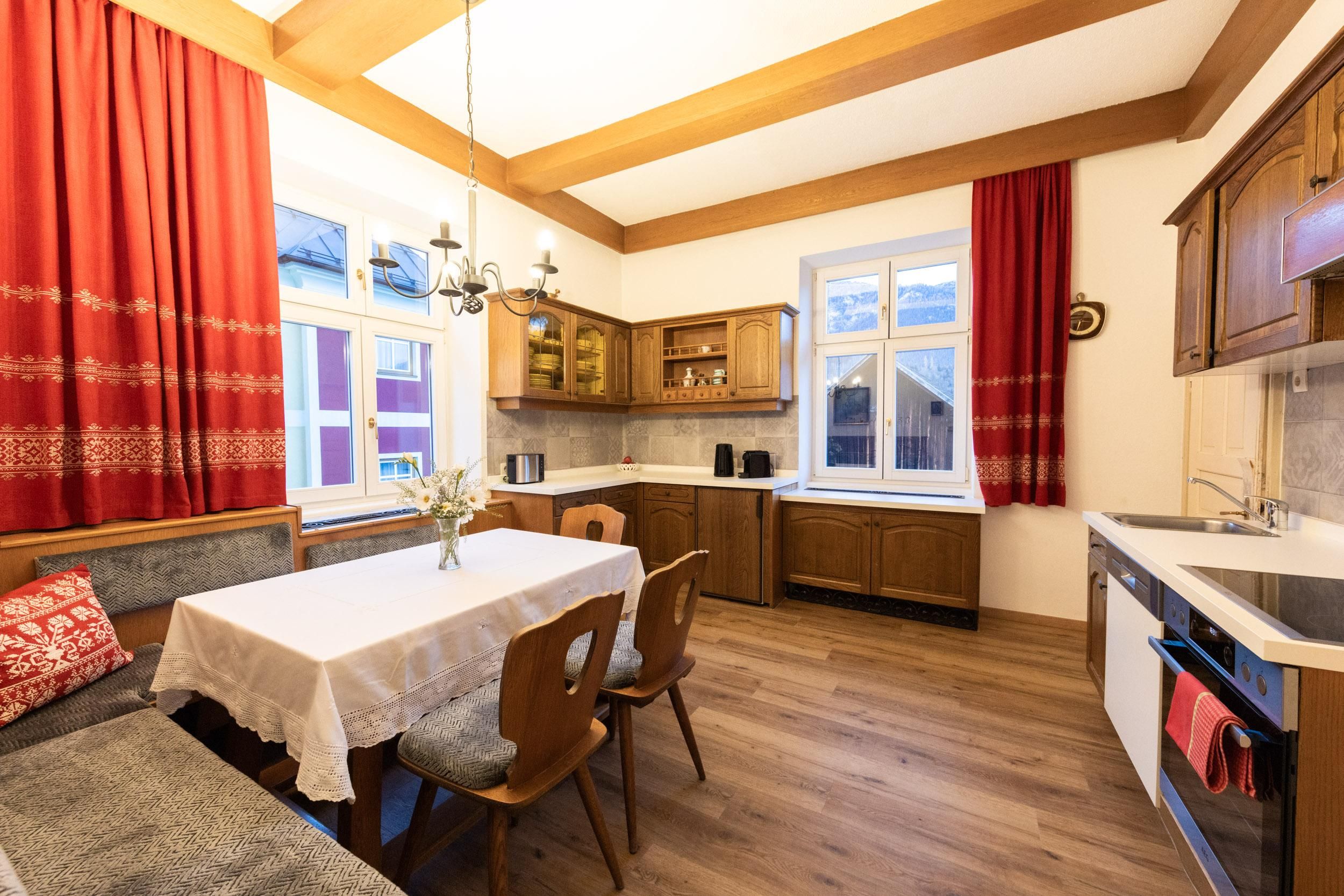 Das großzügige Appartement Beletage erstreckt sich über zwei Etagen und 145 m² und bietet Platz für bis zu 6 Personen. Drei Schlafzimmer mit Flachbild-TV, zwei Badezimmer mit Badewanne, eine separate Toilette, eine voll ausgestattete Küche mit Backofen, E-Herd, Geschirrspüler, Kühlschrank mit kleinem Gefrierfach, Mikrowelle, Toaster, Nespresso Maschine und die gemütliche Zirbenstube schaffen ein stilvolles Ambiente mit Wohlfühlcharakter.
