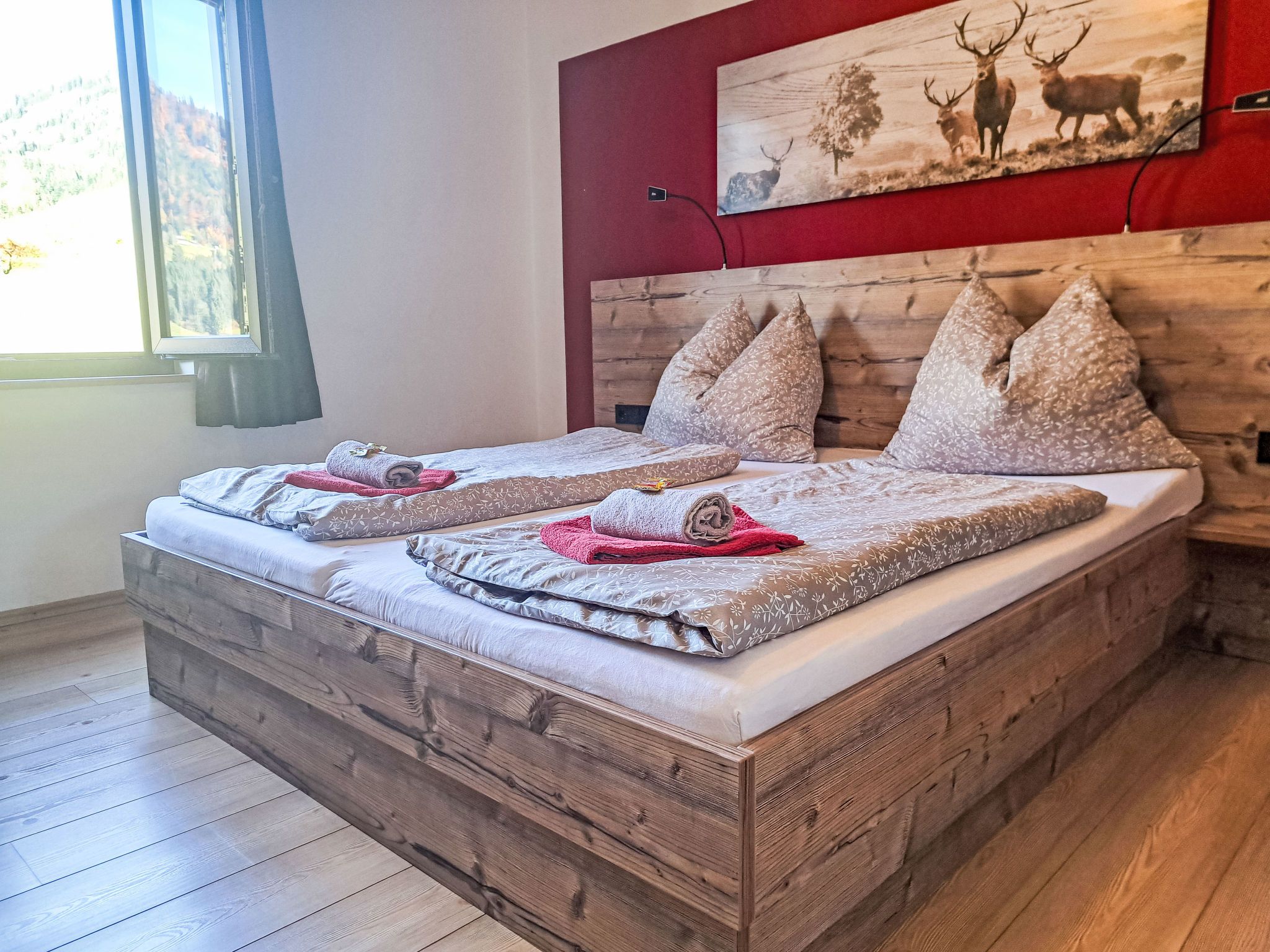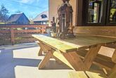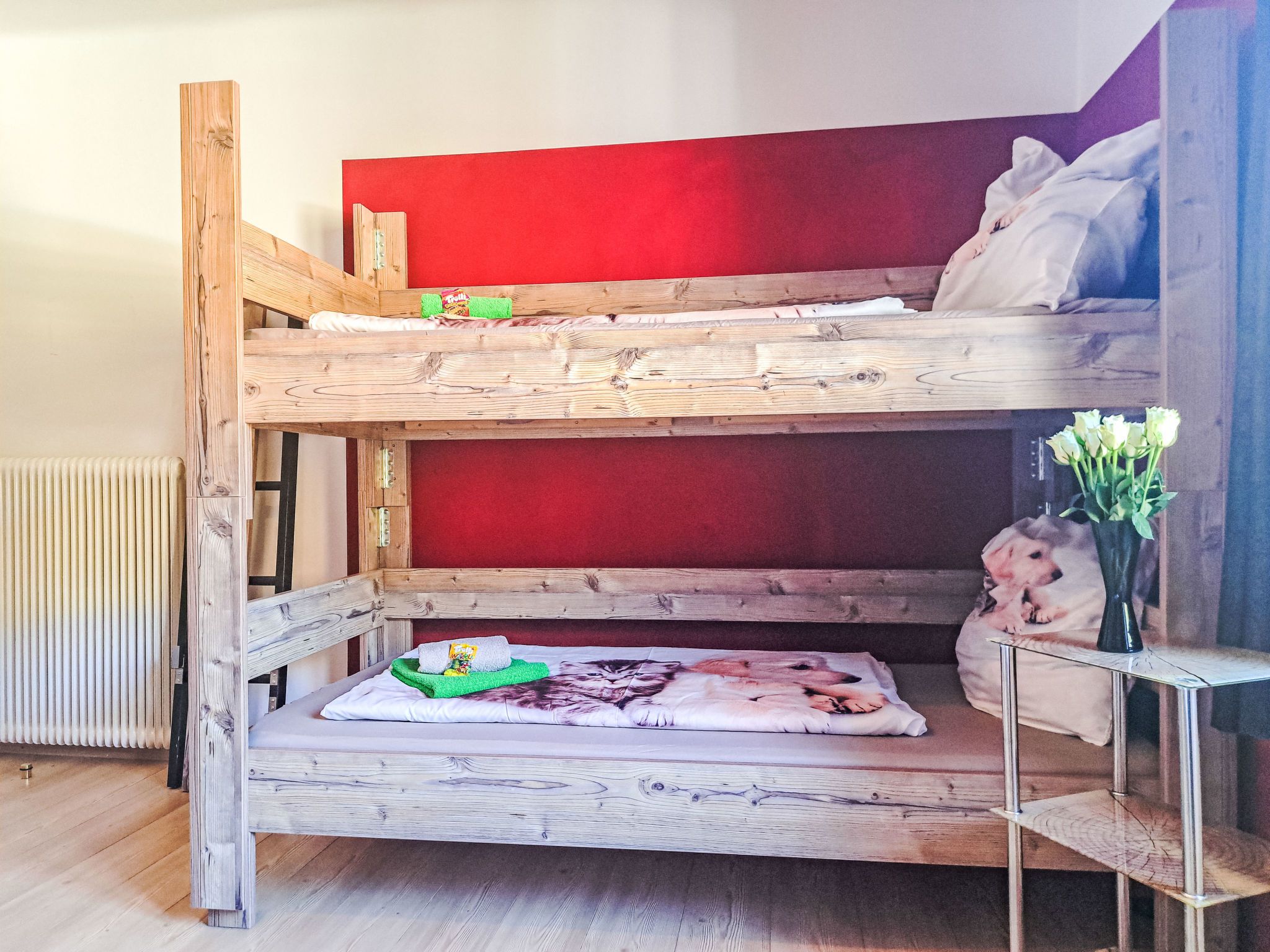 Appartement 2, 3-Zimmer-Wohnung 70 m2 im 1. Stock. Gemütlich eingerichtet: Eingang. 1 Doppelzimmer. 1 Zimmer mit 1 x 2 Etagenbetten, 1 Doppelbett. Grosse Küche (Backofen, Geschirrspüler, 4 Glaskeramikplatten, Toaster, Wasserkocher, Mikrowelle, Tiefkühler, elektrische Kaffeemaschine) mit Essecke. Dusche, sep. WC. Heizung. Parkettboden. Grosse Terrasse. Bitte beachten: Nichtraucher-Haus. Maximal 2 Haustiere/Hunde erlaubt. // Reg. Nr.: