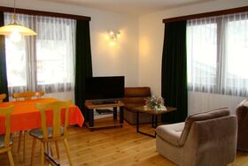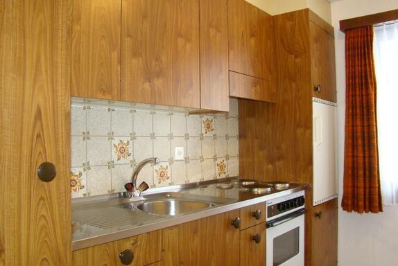 2-Zimmerwohnung (4 Betten, 55 m2), Erdgeschoss, Doppelschlafzimmer mit Lavabo, Wohnzimmer mit 2 Schrankbetten, Esstisch, Polsterstühle und Salontisch, separate Küche mit Backofen und Kühlschrank, Dusche/WC, Südbalkon, TV, Radio, WLAN.