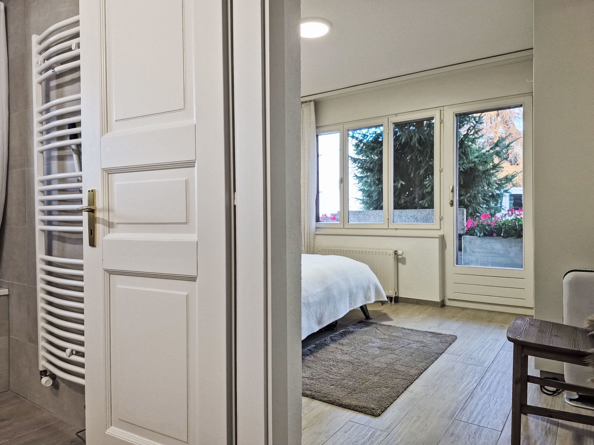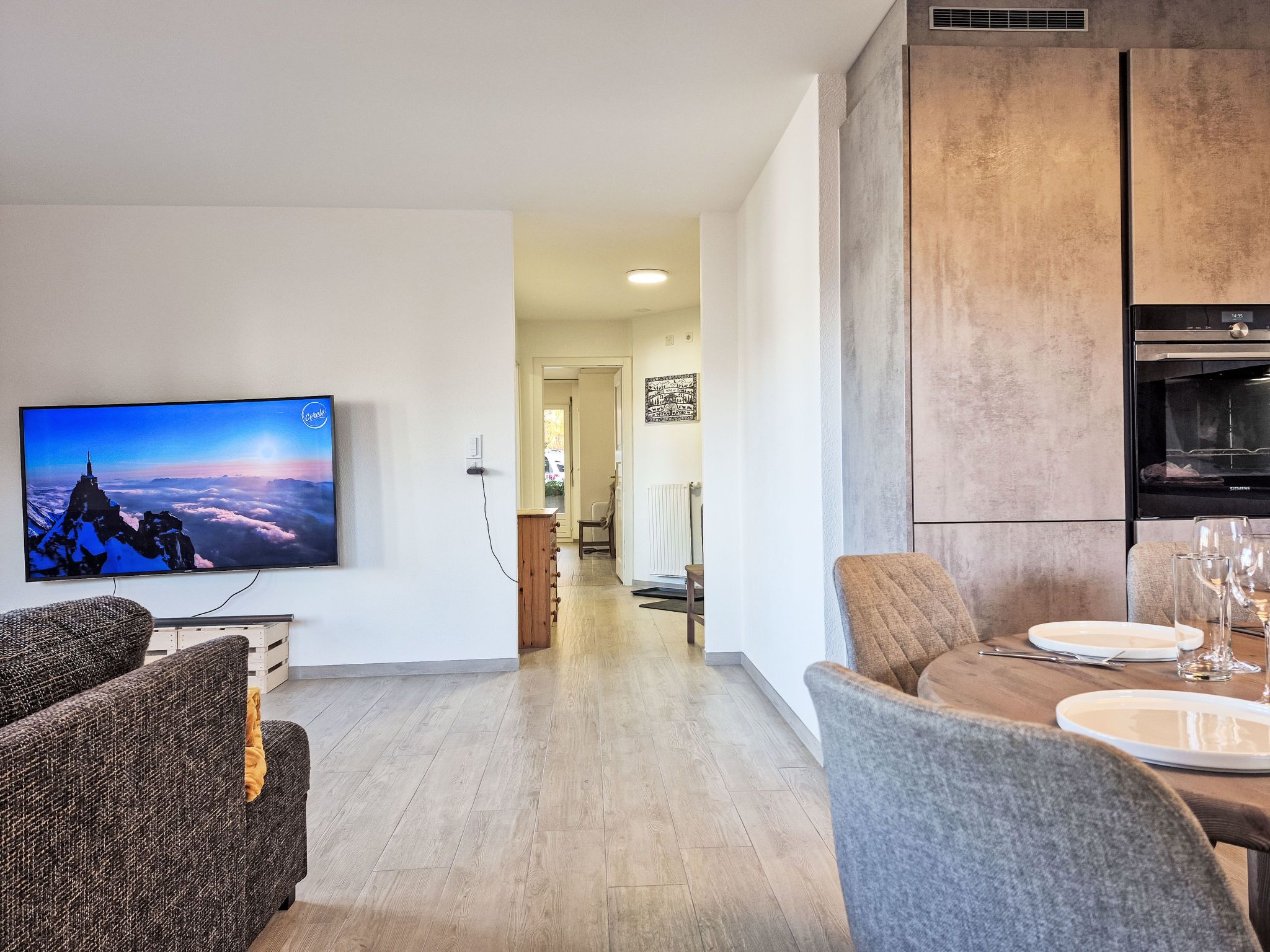 Ambassador 2/1, 3-Zimmer-Wohnung 80 m2, im Erdgeschoss. Renoviert im Jahre 2025, komfortabel und modern eingerichtet: Wohn-/Esszimmer mit Kabel-TV. Ausgang zur Terrasse, Richtung Westen. 2 Zimmer, jedes Zimmer mit 1 Doppelbett. Offene Küche (Backofen, Geschirrspüler, 4 Glaskeramikplatten, Wasserkocher, Tiefkühler, elektrische Kaffeemaschine, Kapseln für die Kaffeemaschine (Nespresso) extra, Racletteofen, Fondue Set (Chinoise, Käse)). Bad/WC, Dusche/WC. Terrasse, Westlage. Terrassenmöbel. Zur Verfügung: Internet (WLAN). Garage Nr. 3. Bitte beachten: Nichtraucher-Unterkunft. 1 Haustier/Hund erlaubt.