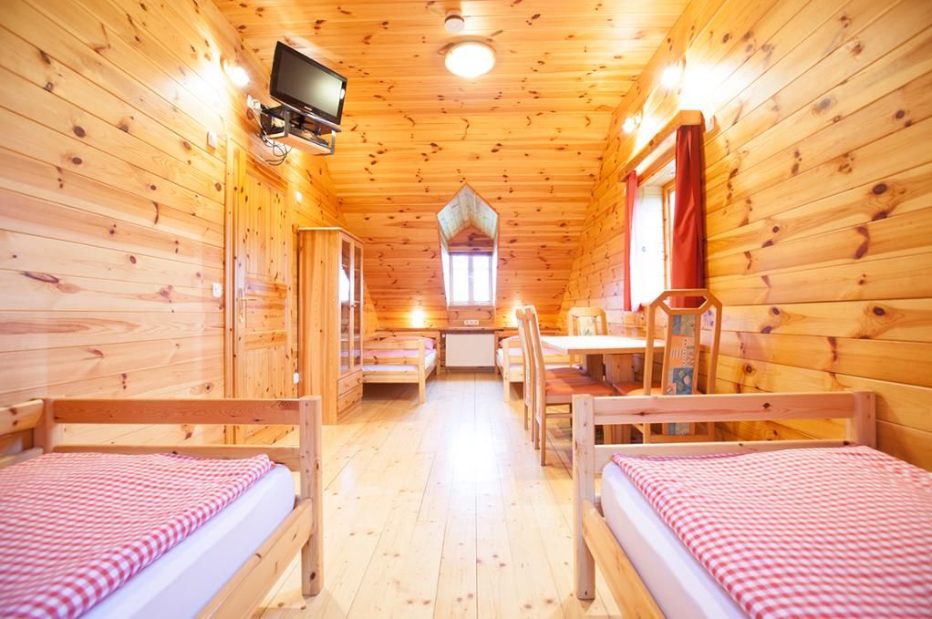 Die Naturzimmer in unserem Blockhaus sind mit Kiefernholz ausgestattet. Das Ambiente ist einfach & gemütlich. Das Gebäude bietet für bis zu 19 Personen Platz und ist die ideale Unterkunft für fröhliche Gruppen und Familien, die nicht auf Komfort verzichten möchten. (max. Kapazität im gesamten Gasthof bis zu 45 Personen)