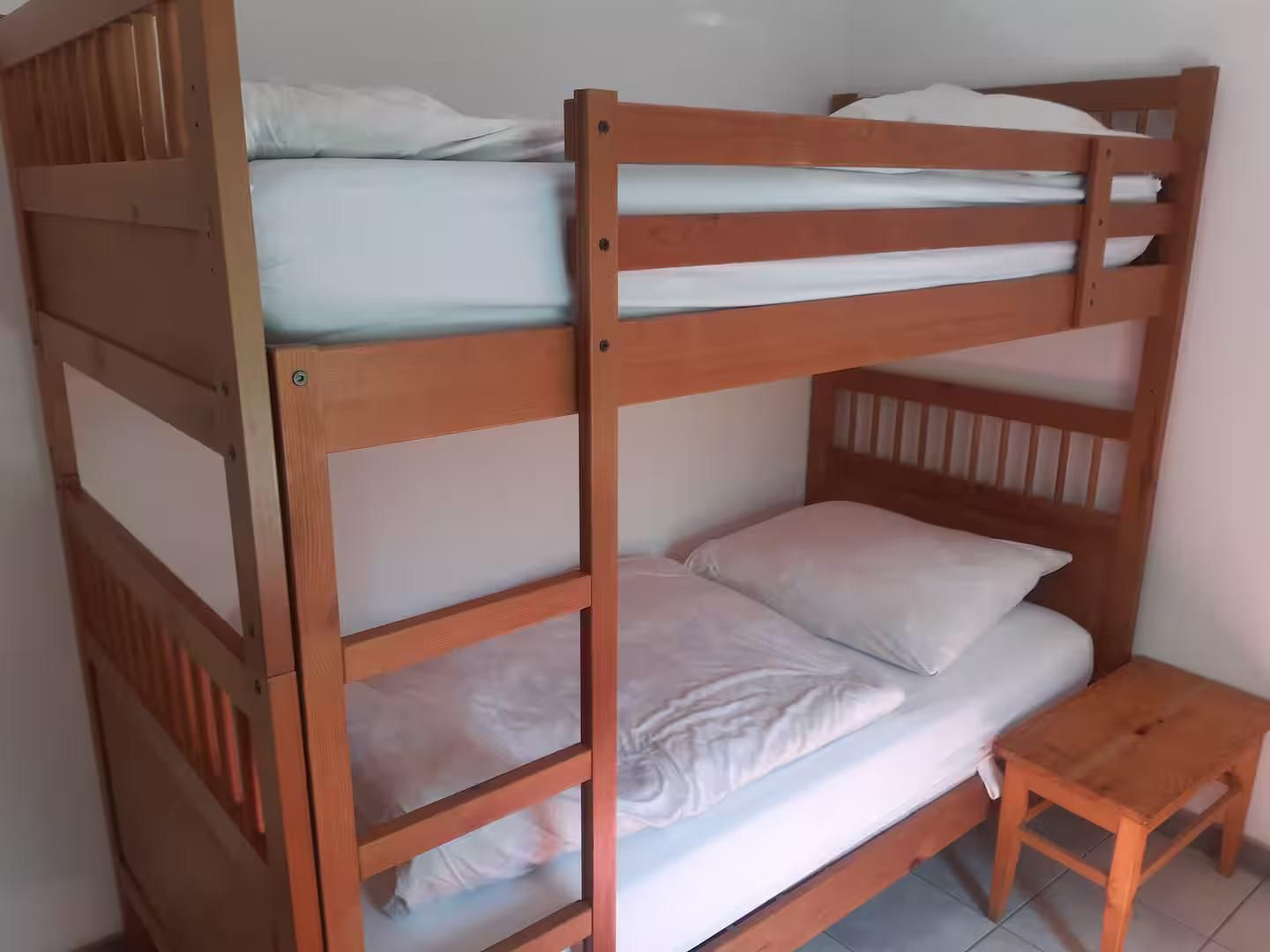 Unsere charmante Ferienwohnung bietet ein komfortables Schlafzimmer mit einem Doppelbett und einer ausziehbaren Couch. Im Erdgeschoss erwartet Sie ein gemütlicher Bereich für bis zu vier Personen. Hier finden Sie einen einladenden Vorraum, eine voll ausgestattete Küche mit Aufenthaltsraum und das Untergeschoss bietet zusätzliche Schlafplätze mit einem Etagenbett (2 m Länge), ideal für zwei Personen oder Kinder. Sollten Sie mit einer größeren Gruppe reisen, steht Ihnen auf Anfrage eine zweite Wohnung im Obergeschoss mit einem weiteren Doppelbett zur Verfügung.