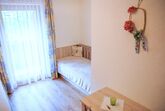 Großzügig eingerichtetes, geräumiges Einbettzimmer mit separater Schlafcouch.