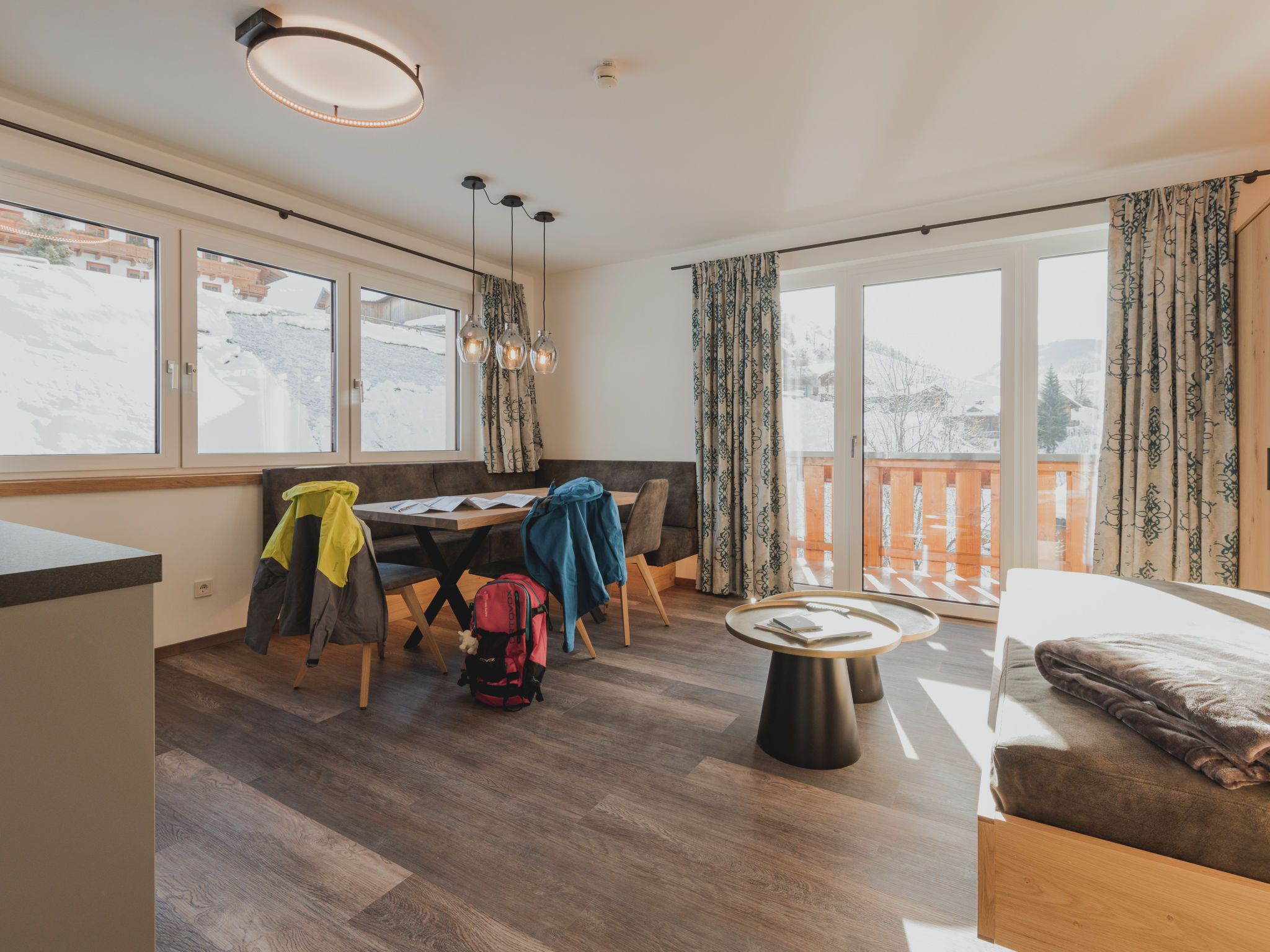 Dienten am Hochkönig: Grosser Wellnessbereich 150m² inklusive, Bademantel, Handtücher und Wellnesstasche vorhanden. Modernes Appartementhaus Portis. 100 m vom Zentrum von Dienten, 50 m vom Skigebiet. Im Hause: Sauna, Dampfbad, Ruheraum, Wellnessbereich in 150 m zur Mitbenutzung, Zentralheizung. Gemeinschaftsgarage. E-Ladestation. Supermarkt 200 m, Restaurant 100 m, Bushaltestelle Arzthaus 160 m. Skisportanlagen 50 m. Bekannte Skigebiete sind gut erreichbar: Dienten. Wandergebiete: Hochkönig.