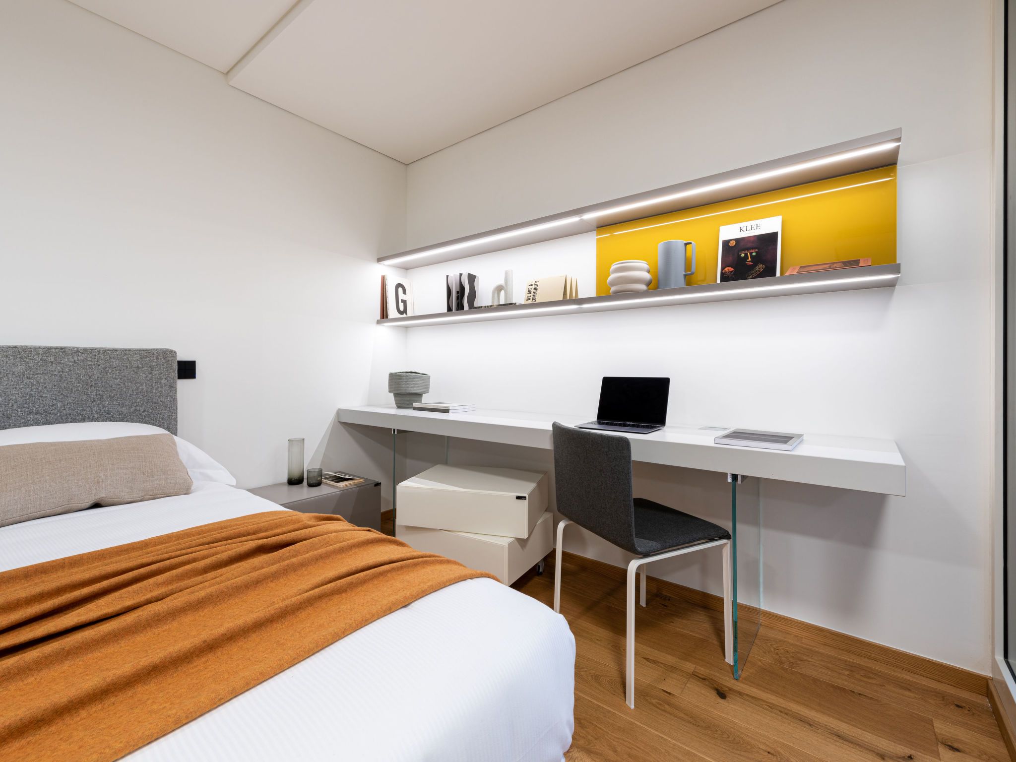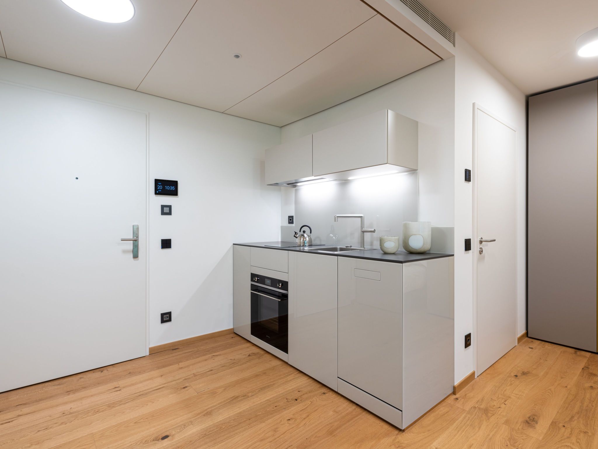 Stabio 20 km von Lugano Centro: Modernes, freistehendes, komfortables Apart-Hotel Lo Scudo di Stabio, 350 m.ü.M., auf 2 Stockwerken, Baujahr 2022, umgeben von Wiesen und Weinbergen. 15 Wohnungen in der Residenz. Im Ort, 1 km vom Zentrum von Stabio, an einer Hauptstrasse, Richtung Nordosten. Zur Mitbenutzung: Grundstück 1'000 m2, grosser, schöner Garten Rasen und Pflanzen. Im Hause: Empfang, Aufenthaltsraum mit TV, Wireless LAN, Fahrstuhl, Einstellraum für Fahrräder, Zentralheizung, Klimaanlage. Wäschewechsel täglich (zusätzlich extra). Handtuchwechsel täglich (zusätzlich extra). Wohnungsreinigung täglich möglich (extra). Zufahrt bis zum Haus. Parkplatz auf dem Grundstück. E-Ladestation. Supermarkt 1 km, Bar 550 m, Bushaltestelle 1 m, Bahnstation Stabio 1.2 km. Nahe gelegene Sehenswürdigkeiten: Fossilienmuseum Arzo 4.8 km, Chicco d'Oro Kaffee Museum 5 km, Villa Braghenti 8 km, La Vecchia Stazione 8 km, Torre Pezza 9 km, Madonna di San Bernardino 9 km. Bekannte Seen in der Umgebung sind gut erreichbar: Lago di Lugano 5 km. Wandergebiete: Monte San Giorgio 9 km, Monte Generoso, Valle di Muggio. Aussenbereich : Picknickbereich, Gartenmöbel, Garten. Allgemeiner Bereich mit Gemeinschaftslounge/TV Bereich, Snackautomaten, Getränkeautomaten, Kaffe- und Teezubehör. Businessausstattung: Konferenz- und Veranstaltungsräume Lo Scudo di Stabio verbindet flexible Gastfreundschaft mit konsequenter Nachhaltigkeit: 22 möblierte Apartments (35–50 m²), ergänzt durch gemeinschaftliche Bereiche wie einen 130 m² grossen Community-Raum und einen 26 m² Meetingraum. Der Ansatz ist ganzheitlich nachhaltig: überwiegendes Holztragwerk in vorgefertigter Rahmenbauweise, natürliche Dämmstoffe, Gründach sowie hocheffiziente Haustechnik, um Energiebedarf und Emissionen über den gesamten Lebenszyklus zu senken. Die Sichtkork-Fassaden integrieren Photovoltaikmodule an den Süd- und Westseiten und verbinden Energiegewinnung mit architektonischer Identität. Sanfte Mobilität wird durch E-Auto-Ladestationen, eine Fahrrad-Service-Station und einen gesicherten Fahrradraum im Erdgeschoss unterstützt. Das Ensemble ist das erste Gebäude im Tessin mit SNBS-Zertifizierung, verfügt über Minergie-P-ECO (Nr. TI-011-P-ECO) sowie das Label Swisstainable – Level II – Belege für die ökologische, soziale und wirtschaftliche Qualität, zudem wurde es bei den Active House Awards 2022 ausgewählt/gewürdigt, was den Fokus auf Nutzerkomfort (Licht, Luft, Wohlbefinden) neben der Energieeffizienz unterstreicht.