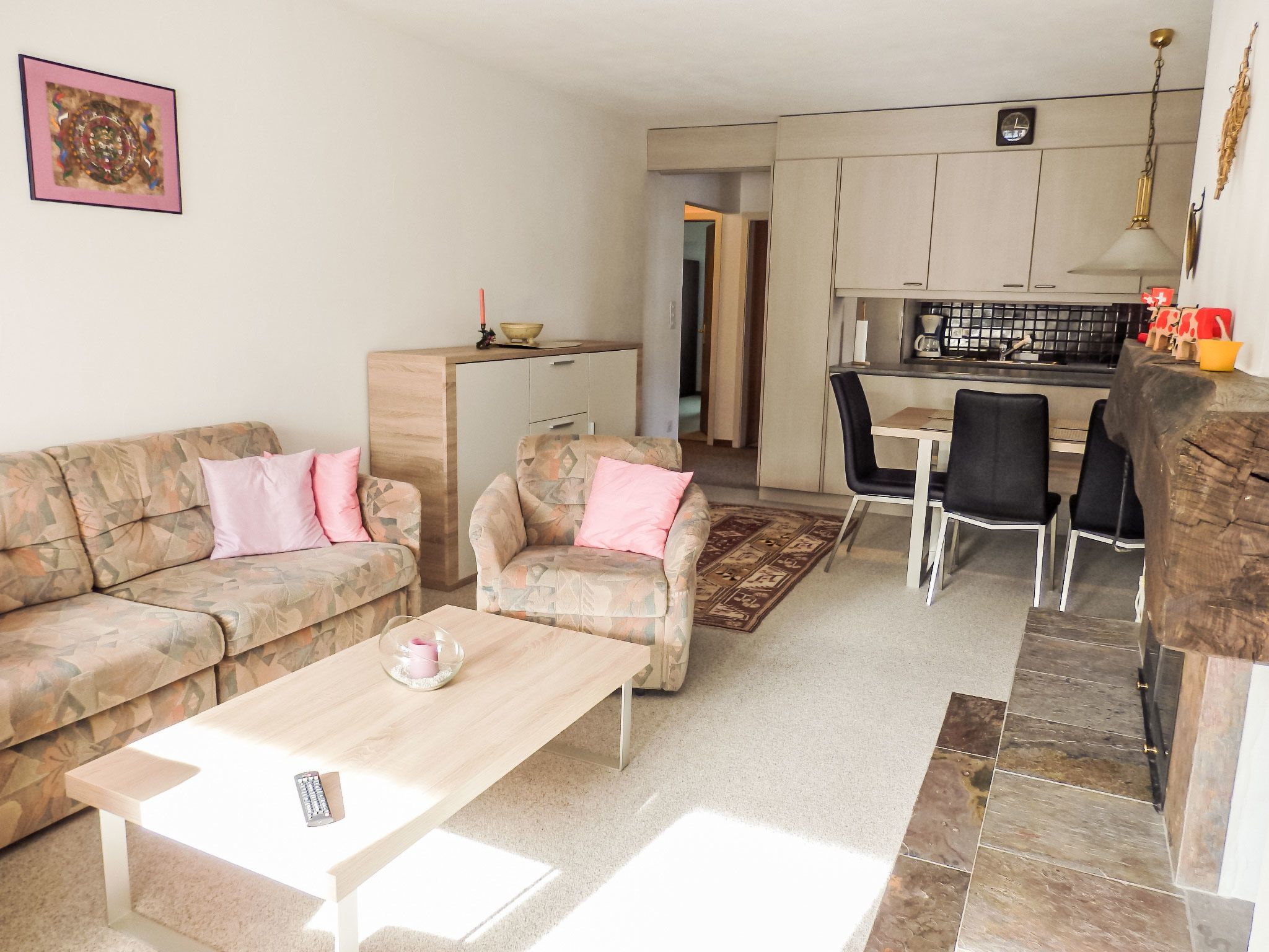 Curnera 9/4, 3-Zimmer-Wohnung 74 m2 im 1. Stock. Gemütlich eingerichtet: Wohn-/Esszimmer mit offenem Kamin und Kabel-TV (Flachbildschirm), DVD. Ausgang zum Balkon. 1 Doppelzimmer. 1 Kinderzimmer mit 1 Bett und 1 Ausziehbett. Küche (4 Kochplatten, Backofen, Geschirrspüler, Toaster, Wasserkocher, Mikrowelle, elektrische Kaffeemaschine, Kapseln für die Kaffeemaschine (Nespresso) extra, Racletteofen, Fondue Set (Käse)) mit Durchreiche. Bad/WC. Balkon 5 m2, Ostlage. Balkonmöbel. Schöne Sicht auf die Berge, die Landschaft und die Ortschaft. Zur Verfügung: Internet (WLAN, gratis). Parkplatz (1 Auto), Garage beim Haus. Bitte beachten: Nichtraucher-Unterkunft.