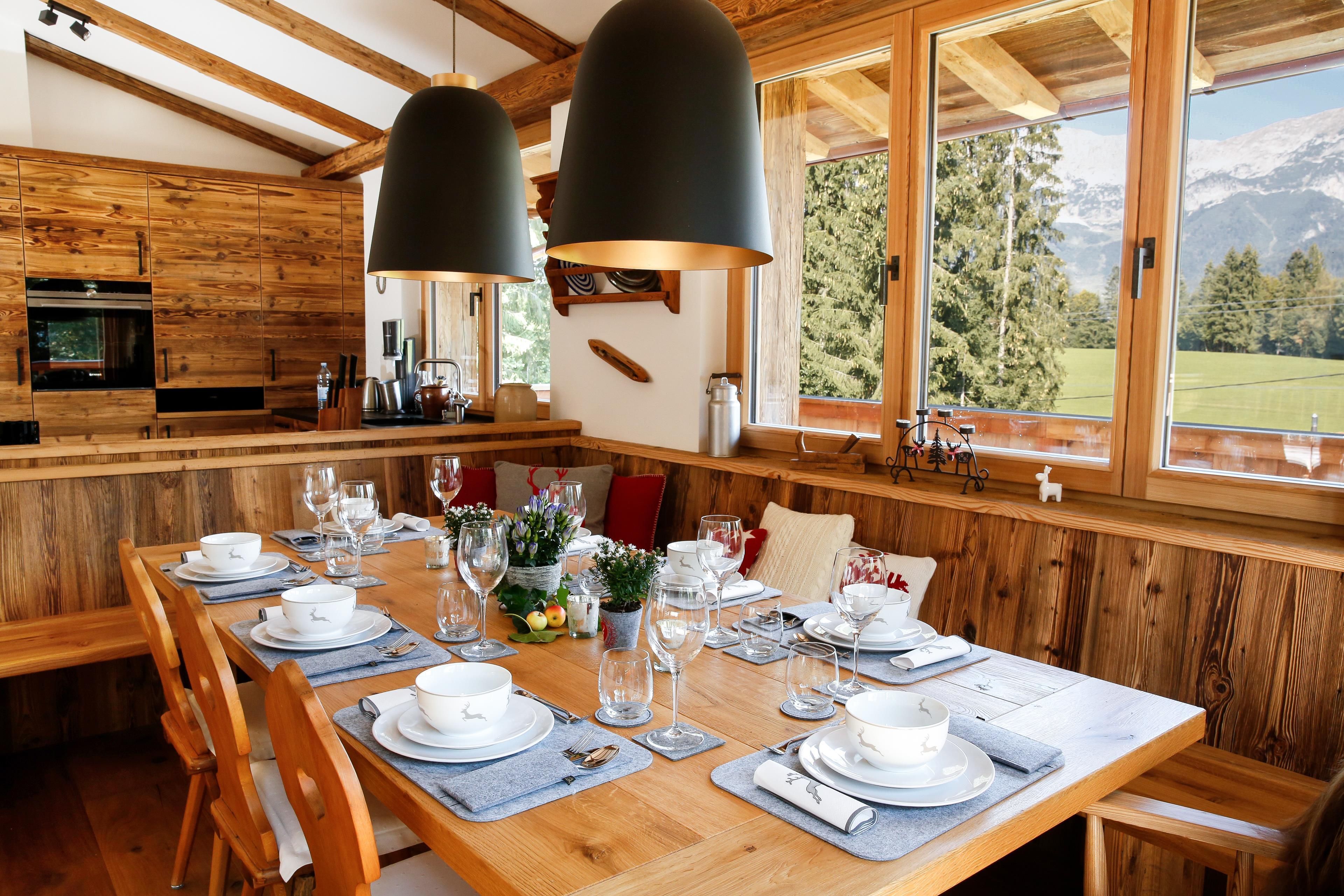 Der rundum verlaufende Balkon bietet atemberaubende Ausblicke auf den Wilden Kaiser – perfekt zum Frühstücken in der Sonne oder für einen Aperitif bei Sonnenuntergang.