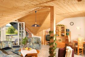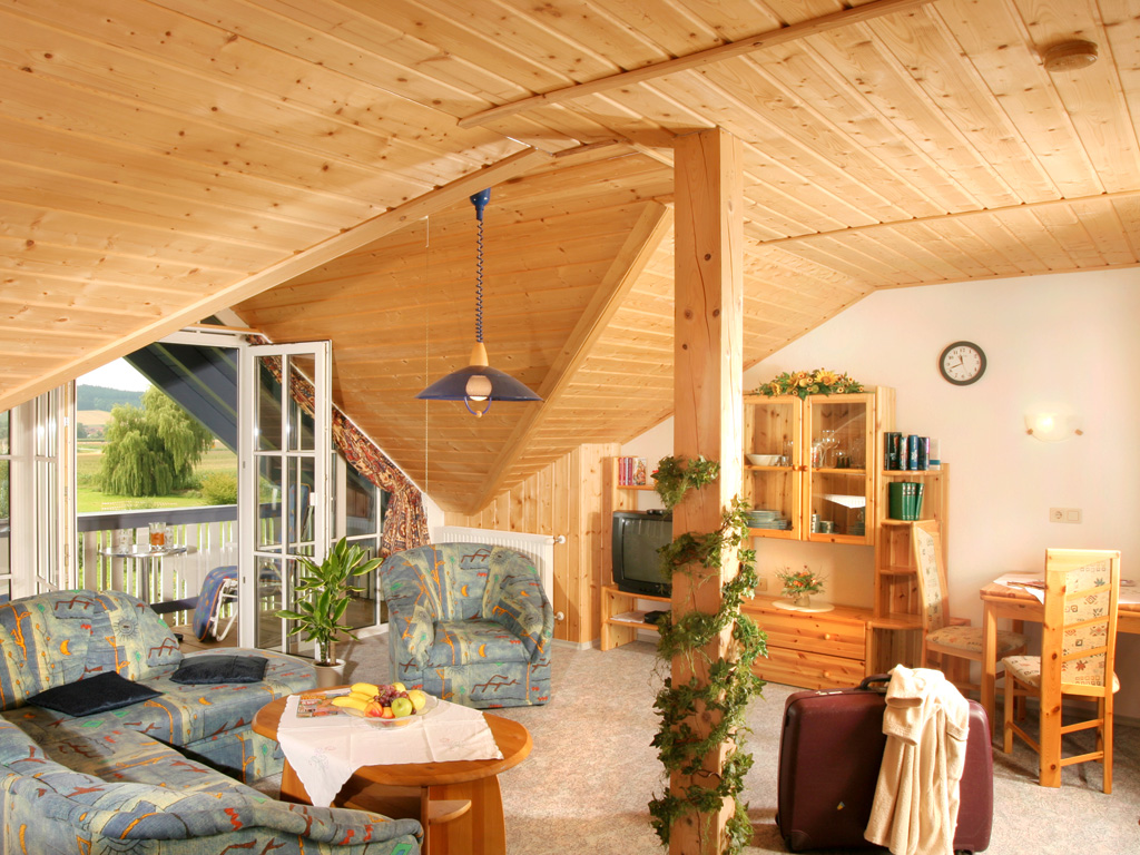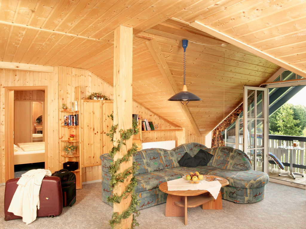 Die 65 m² große Ferienwohnung befindet sich im 2. Obergeschoss unterm Dach. Die Wohnung hat getrennte Wohn- und Schlafzimmer. Sie ist komplett ausgestattet inkl. Sat-TV, Radio und CD-Player. Der große Balkon mit Blick Richtung Süden ins Rottal lädt zum Ruhen und Genießen ein.
