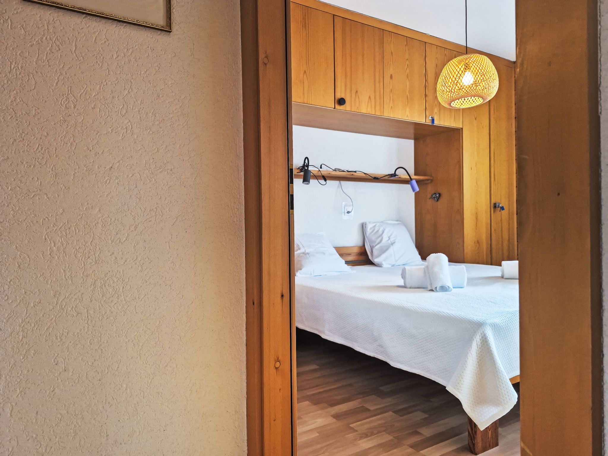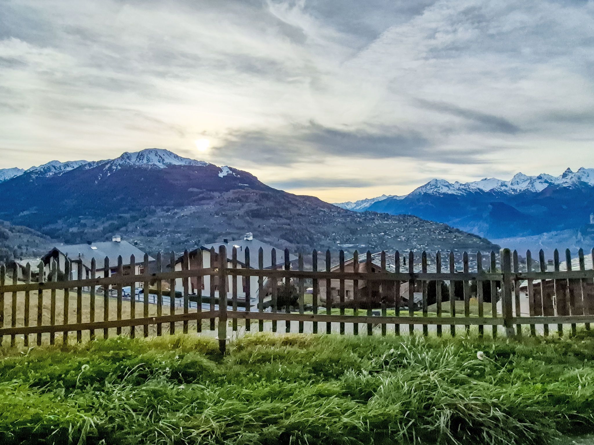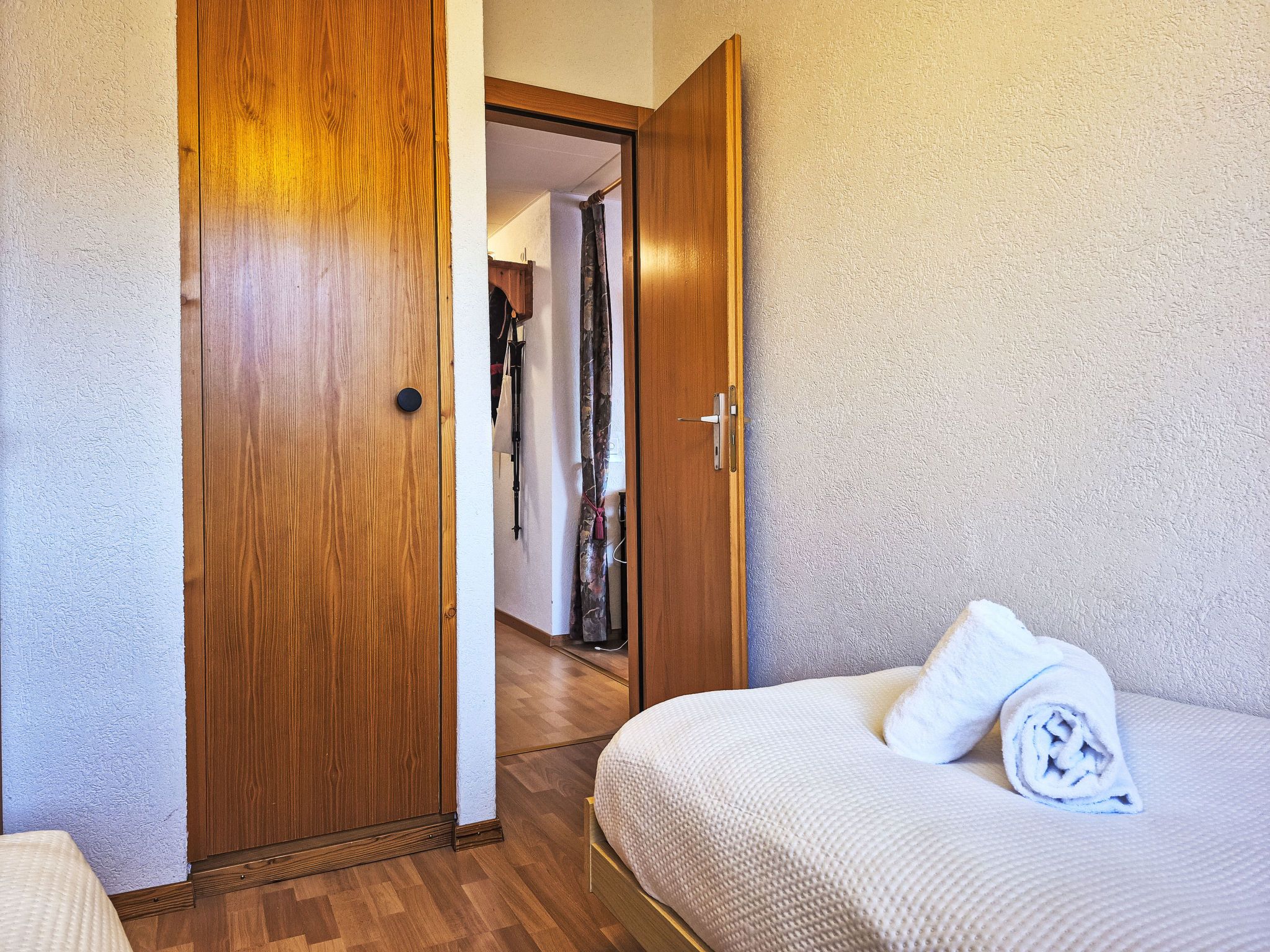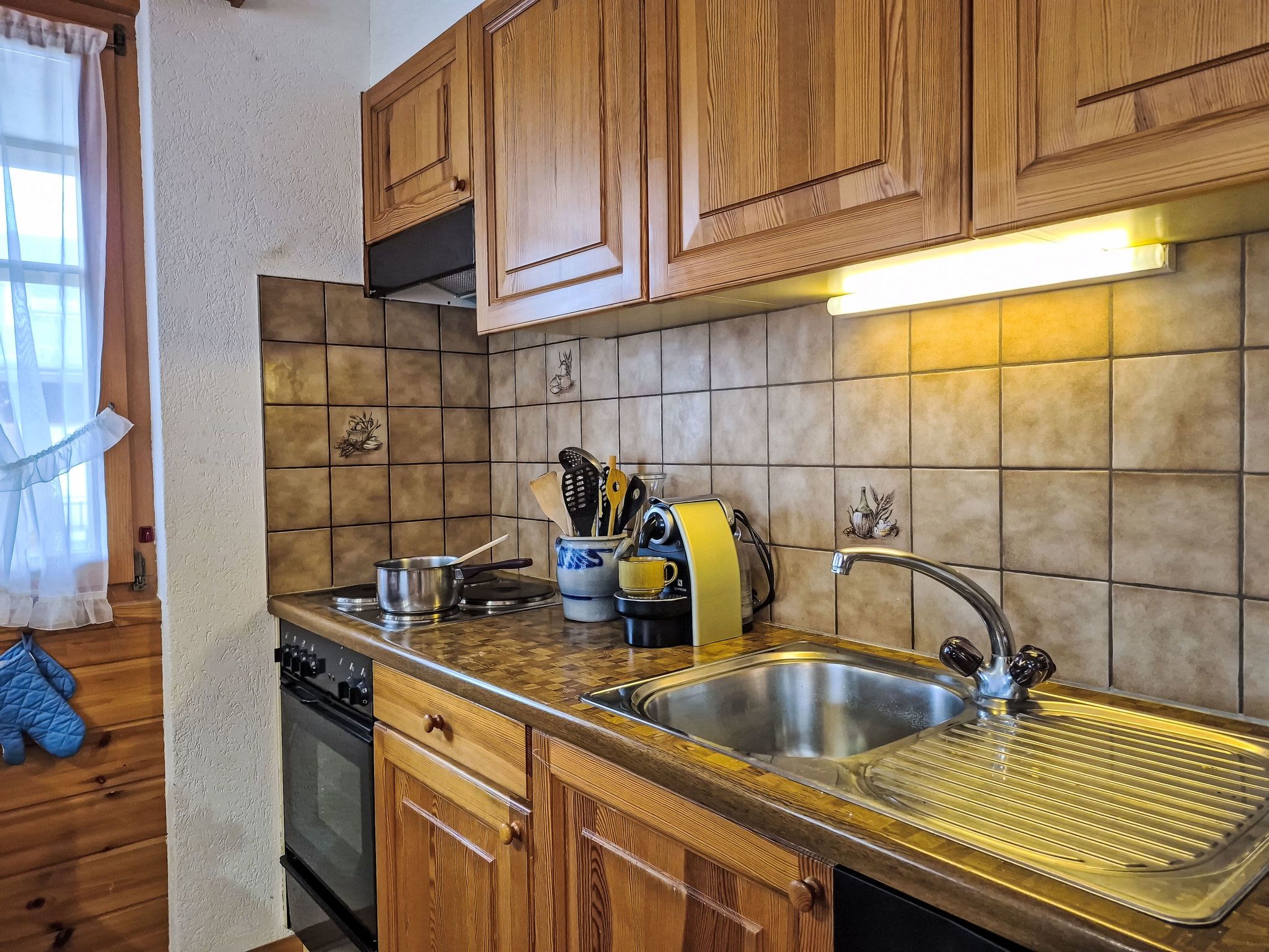 La Meinaz 1, 3-Zimmer-Wohnung 75 m2, im Erdgeschoss. Hell, komfortabel und geschmackvoll eingerichtet: Eingang mit 1 Bett (90 cm, Länge 200 cm). Wohn-/Esszimmer mit offenem Kamin. Ausgang zur Terrasse, Richtung Nordwesten und Richtung Osten. 1 Zimmer mit 1 franz. Bett (2 x 90 cm, Länge 200 cm). 1 Zimmer mit 2 Betten (80 cm, Länge 200 cm). Offene Küche (4 Kochplatten, Backofen, Geschirrspüler, Toaster, Wasserkocher, Mikrowelle, elektrische Kaffeemaschine, Kapseln für die Kaffeemaschine (Nespresso) extra, Racletteofen, Fondue Set (Käse)). Bad/WC, Dusche/WC. Terrasse, Nordlage und Westlage. Terrassenmöbel. Sehr schöne Sicht auf die Berge und das Tal. Zur Verfügung: Internet (WLAN, gratis).