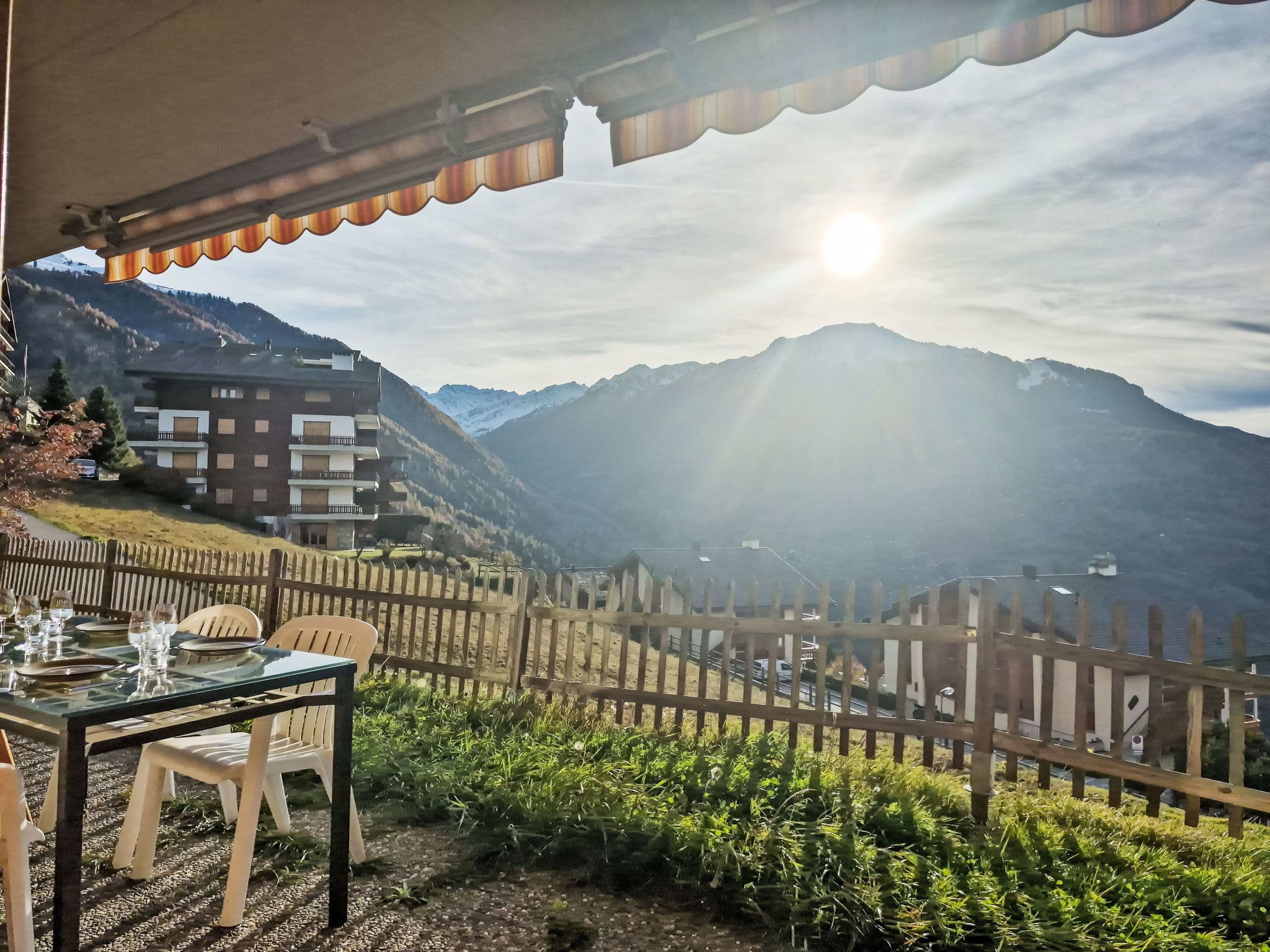 Appartementhaus La Meinaz. Zentrale, sonnige Lage am Hang. Im Hause: Restaurant, Fahrstuhl, Waschmaschine (extra), Wäschetrockner (extra). Parkplatz (beschränkte Anzahl) beim Haus. Supermarkt 50 m, Restaurant 10 m, Bäckerei 150 m, Bushaltestelle Veysonnaz Station 450 m, Bahnstation Gare de Sion 14 km, Hallenbad 50 m. Golfplatz (18 Loch) 14 km, Tennis 350 m, Gondelbahn 650 m, Skibushaltestelle 10 m. Nahe gelegene Sehenswürdigkeiten: Alaïa Bay - Surf Park 16 km. Bekannte Skigebiete sind gut erreichbar: Les 4 Vallées - Veysonnaz 650 m. Wandergebiete: Grand bisse de Vex 100 m. Der Besitzer akzeptiert keine Jugendgruppen.