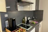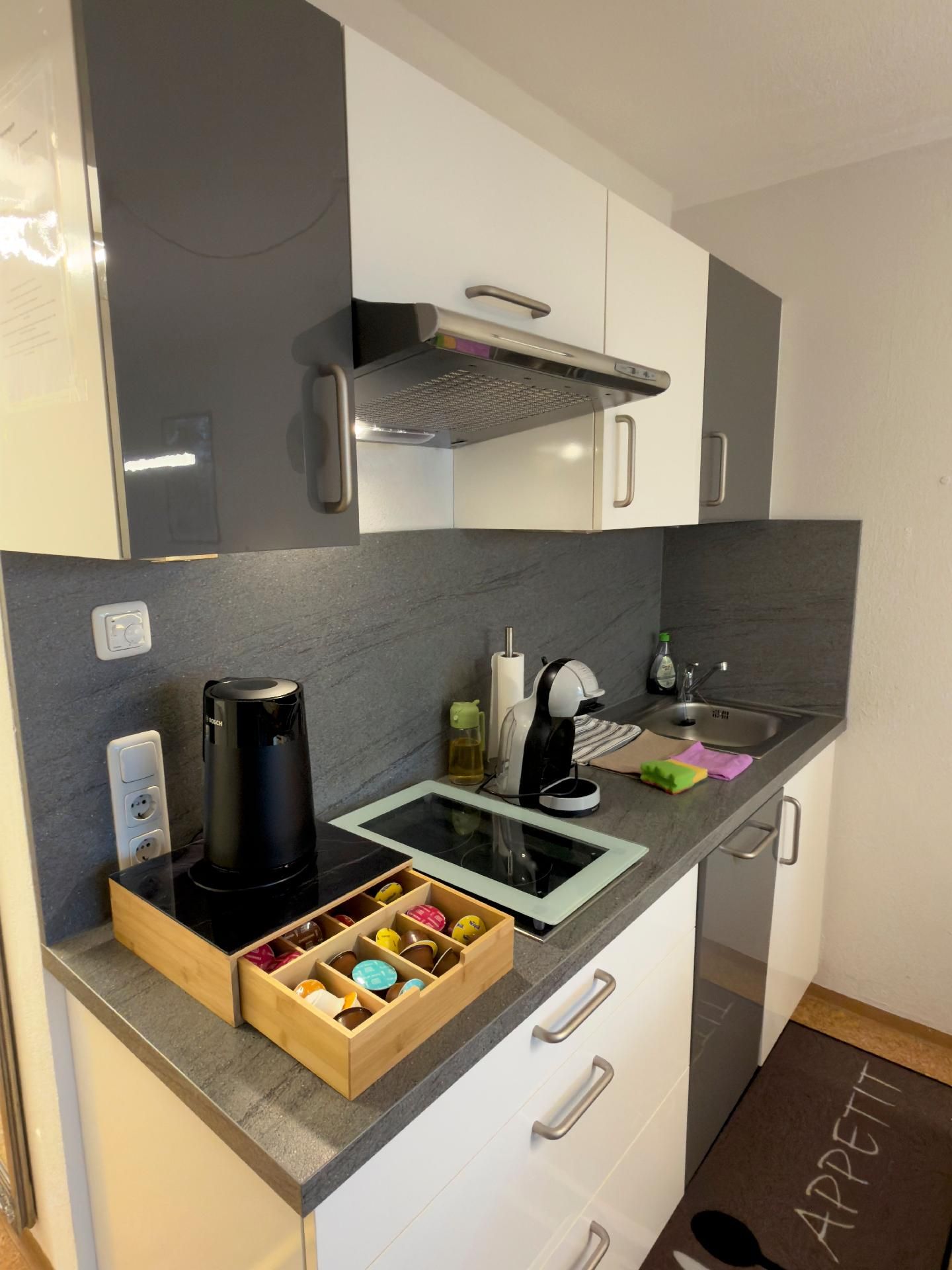 Kochen: 2-Plattenherd; Gefrierfach; Induktionsherd; Kaffekapselmaschine; Kühlschrank; Mikrowelle; Spülmaschine; Toaster; Wasserkocher
