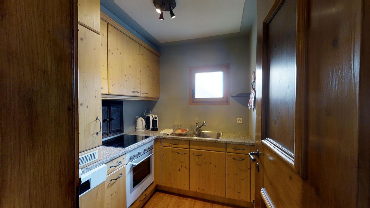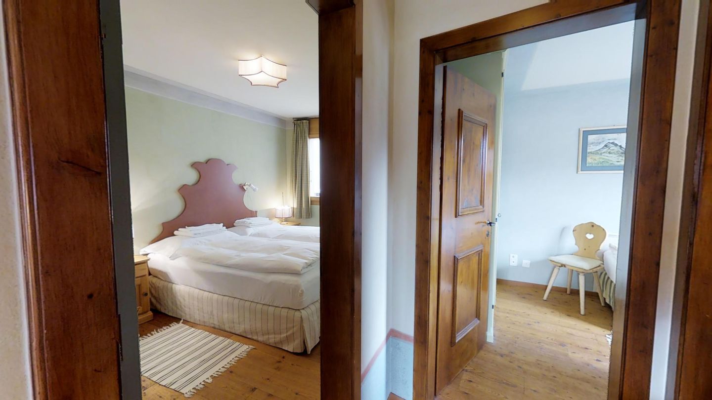 3-Zimmerwohnung im 1. Stock mit ca. 70m2. Eingang mit Garderobe. Wohn- und Esszimmer mit TV, Radio, Internet und Kamin. Ausgang zum Balkon. Ein Doppelzimmer. Bad mit Wanne/WC/ und Lavabo. Ein Zimmer mit zwei Einzelbetten. Separate Küche mit Fenster, Backofen, Chicco d'Oro Kaffeemaschine und Geschirrspülmaschine. Ein Garagenplatz. Skiraum und Waschküche zur allgemeinen Benützung. Haustiere sind nicht erlaubt.