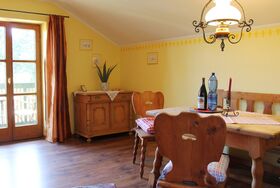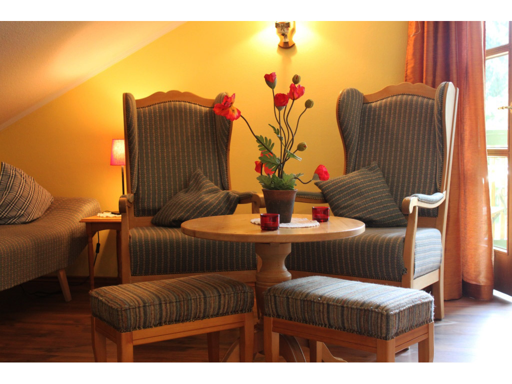 Die großzügigen und individuellen Ferienwohnungen (53-63qm) verfügen alle über Wohn-, Schlafzimmer und eigener Küche mit bayrischer Ecksitzbank, Wohnbereich mit Sitzgruppe und TV, Radio, Flur und Bad mit Dusche/WC/Fön/Bademantel/Handtücher.