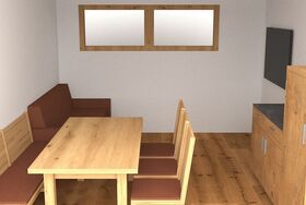 Abgerundet wird die Wohnung mit einem kleine Balkon mit direktem Blick auf den Rettenstein. Im Garten befindet sich ein Spielplatz für die Kinder sowie eine Sitzgelegenheit.