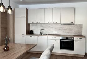 Die Unterkunft verfügt über eine Terrasse mit Garten und bietet einen herrlichen Bergblick. Zudem erwartet Sie eine vollausgestattete Küche mit gemütlichem Wohn-Essbereich, inklusive Geschirr, Besteck, Kochutensilien, Backofen, Geschirrspüler, Kaffeemaschine und Wasserkocher.