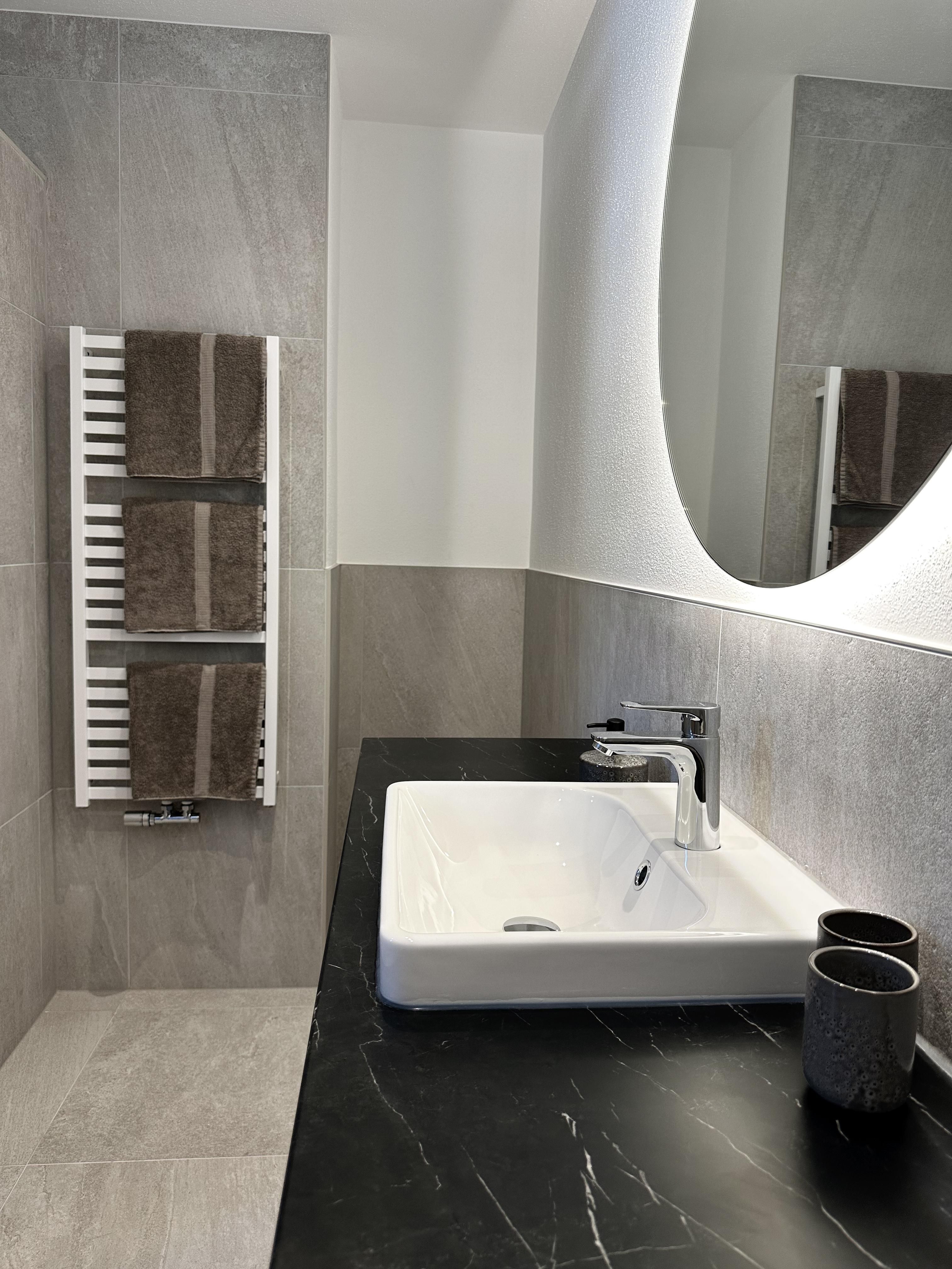 Zwei gemütliche Schlafzimmer inkl. Kleiderschrank sorgen für entspannten Schlaf und ausreichend Stauraum. Das moderne Badezimmer verfügt über eine begehbare Dusche, zusätzlich steht ein separates WC zur Verfügung – Handtücher sind selbstverständlich inklusive.