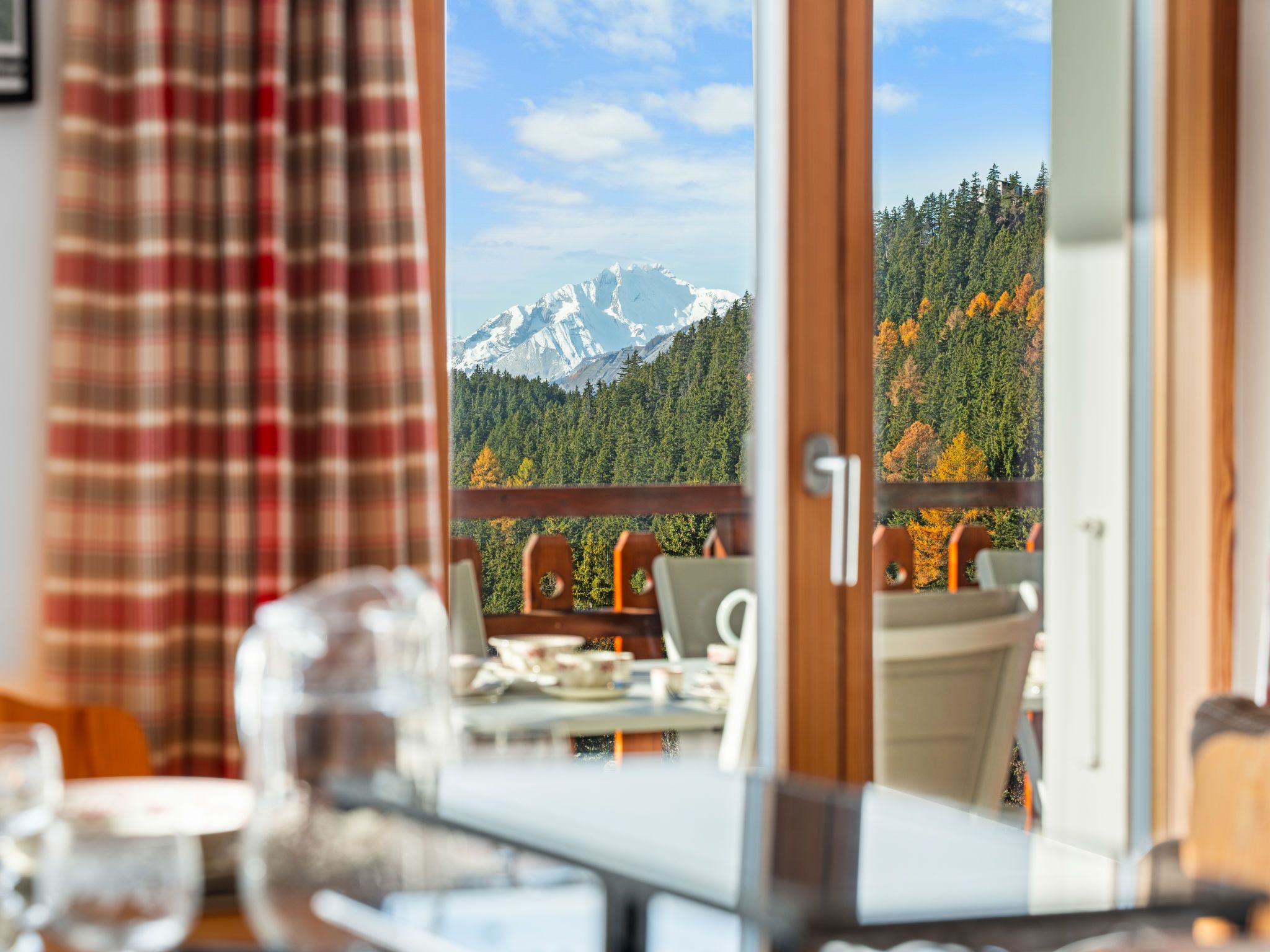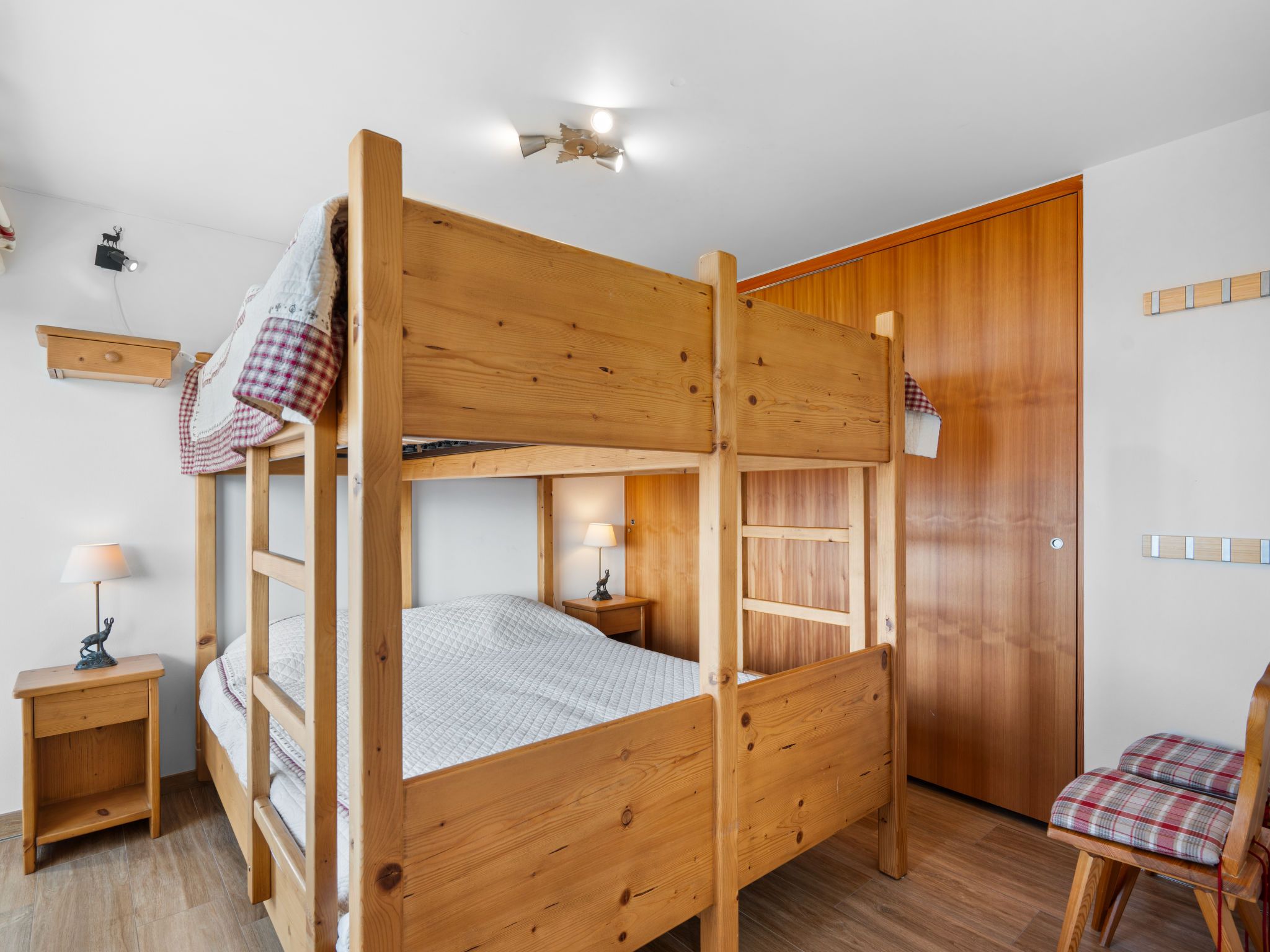 Les Aiguilles Vertes Rez supérieur, 4-Zimmer-Wohnung 70 m2 im 1. Stock. Objekt geeignet für 6 Erwachsene + 2 Kinder. Komfortabel und modern eingerichtet: Wohn-/Esszimmer mit Kabel-TV. Ausgang zum Balkon, Richtung Süden und Richtung Westen. 1 Zimmer mit 1 Doppelbett (2 x 90 cm, Länge 200 cm), Bad/WC. 1 Zimmer mit 1 Doppelbett (2 x 90 cm, Länge 200 cm). 1 Zimmer mit 2 x 2 Etagenbetten (80 cm, Länge 200 cm). Ausgang zum Balkon. Offene Küche (Backofen, Geschirrspüler, 4 Induktionskochplatten, Toaster, Wasserkocher, Tiefkühler, elektrische Kaffeemaschine, Kapseln für die Kaffeemaschine (Nespresso) extra, Racletteofen, Kombinationsmikrowelle, Fondue Set (Chinoise, Käse)). Dusche/WC. Grosser Balkon 20 m2, Südwestlage. Balkonmöbel, Liegestühle (2). Sehr schöne Sicht auf die Berge und die Landschaft. Zur Verfügung: Kinderhochstuhl, Babybett, Haartrockner. Internet (WLAN, gratis). Garage Nr. 4, Höhe 200 cm, Breite 220 cm. Bitte beachten: Nichtraucher-Unterkunft. 1 Haustier/Hund erlaubt. Faltbares Babybett ohne Bettwäsche und ohne Decke.