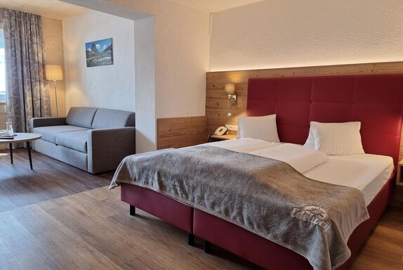 Komfortables neu möbliertes Familienzimmer  mit Dusche, WC, Balkon, Kabel-TV und Telefon. Einzelbelegung Zuschlag: +22 €