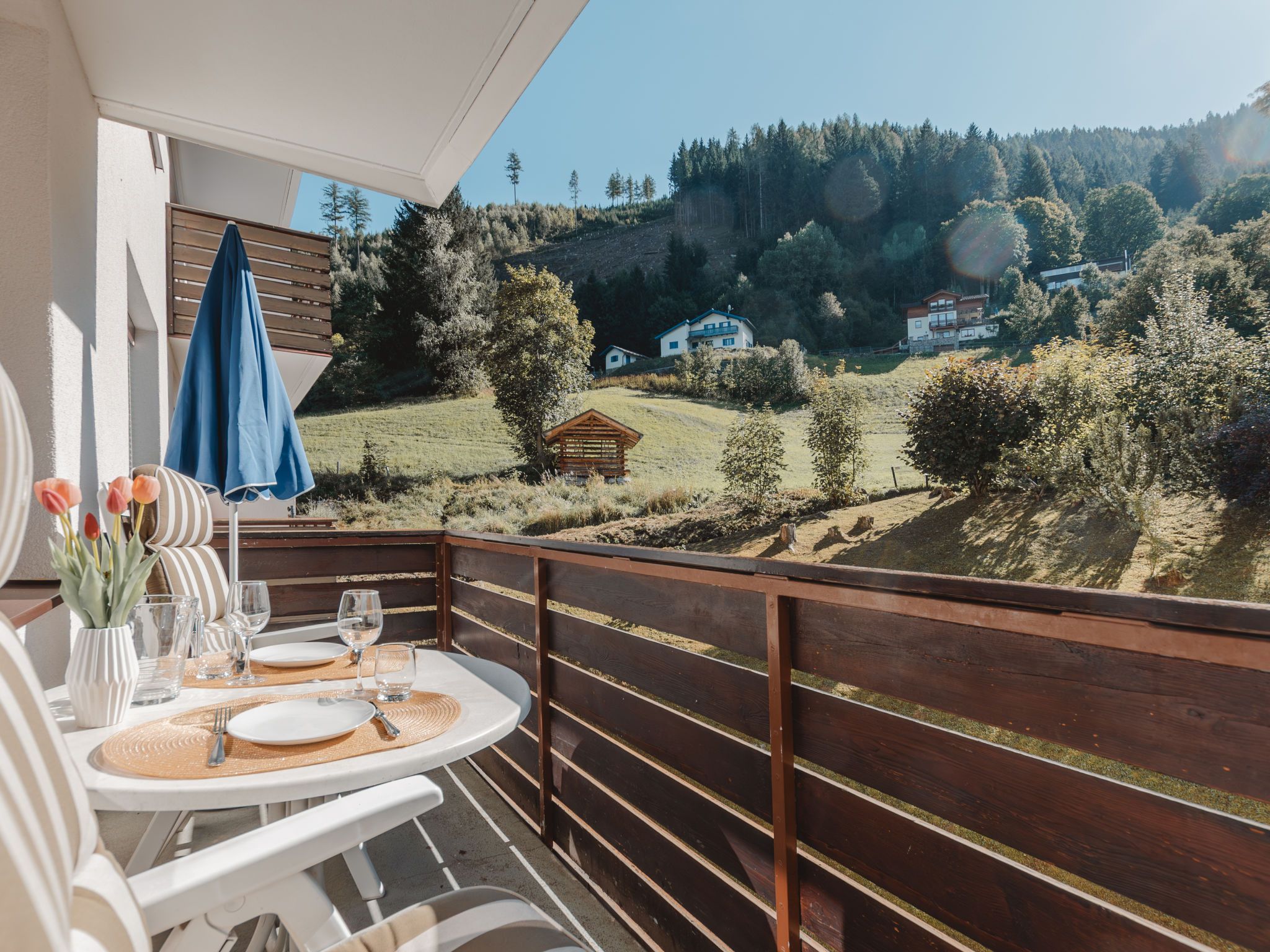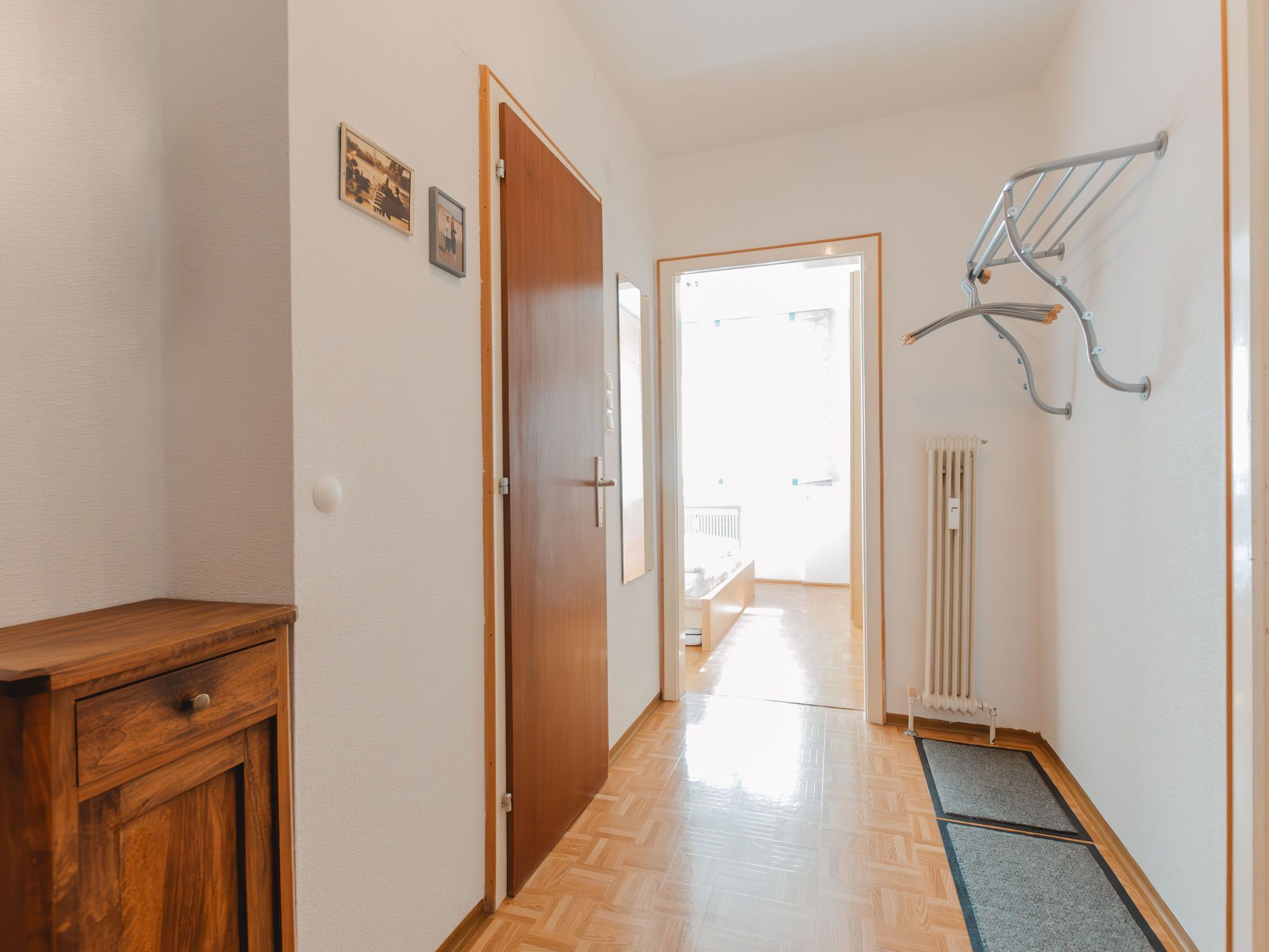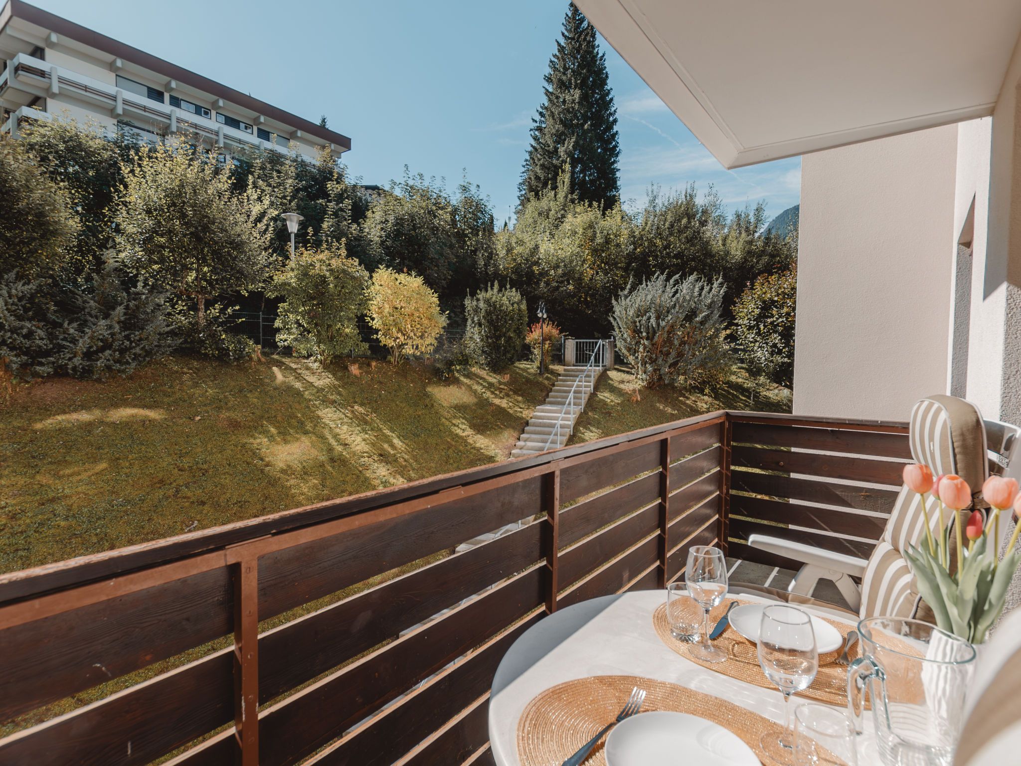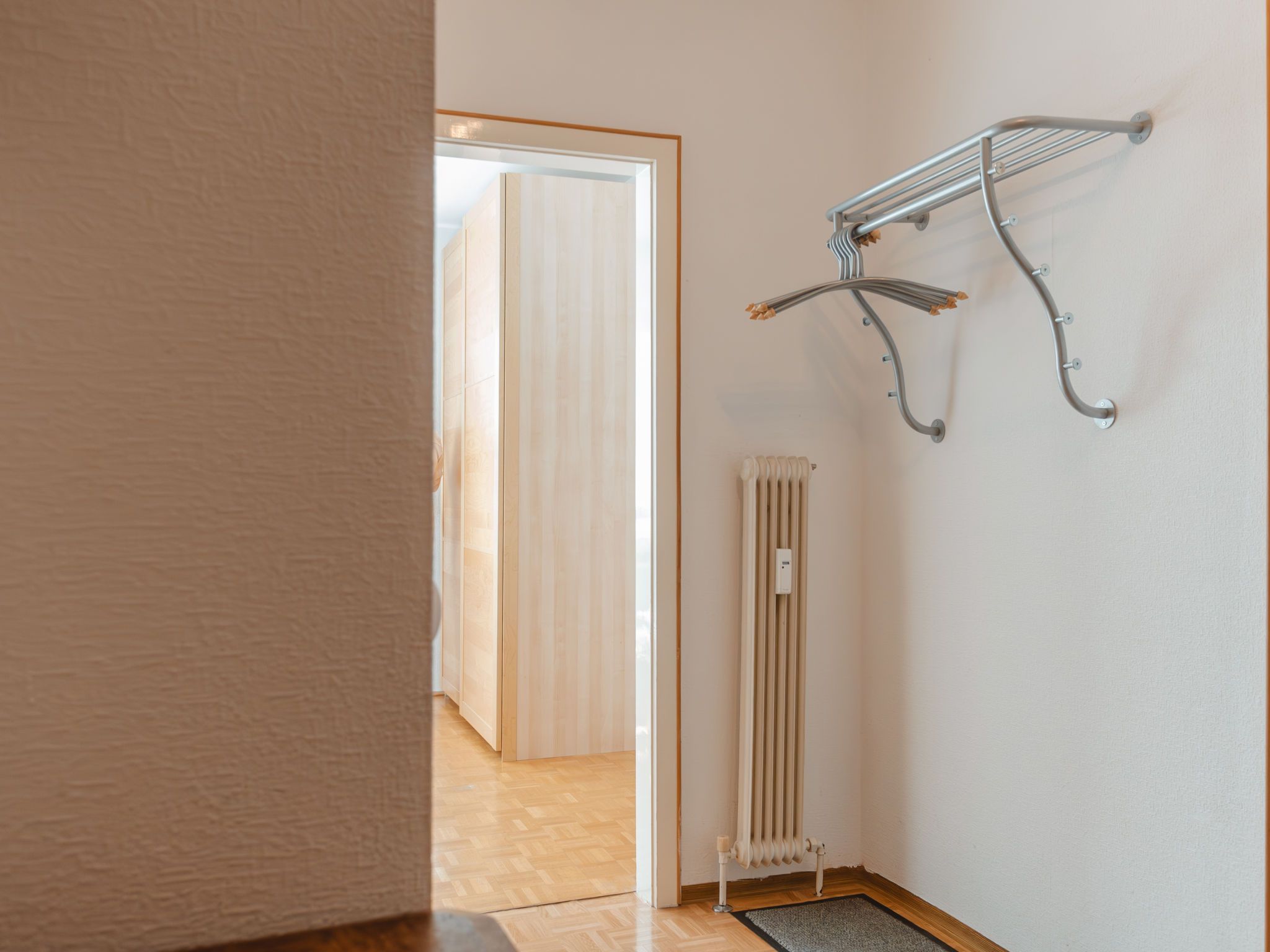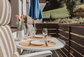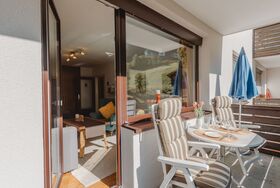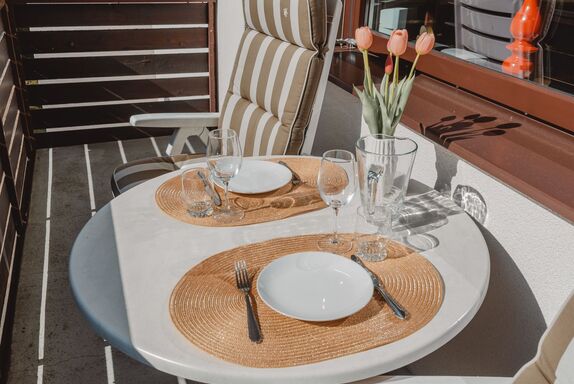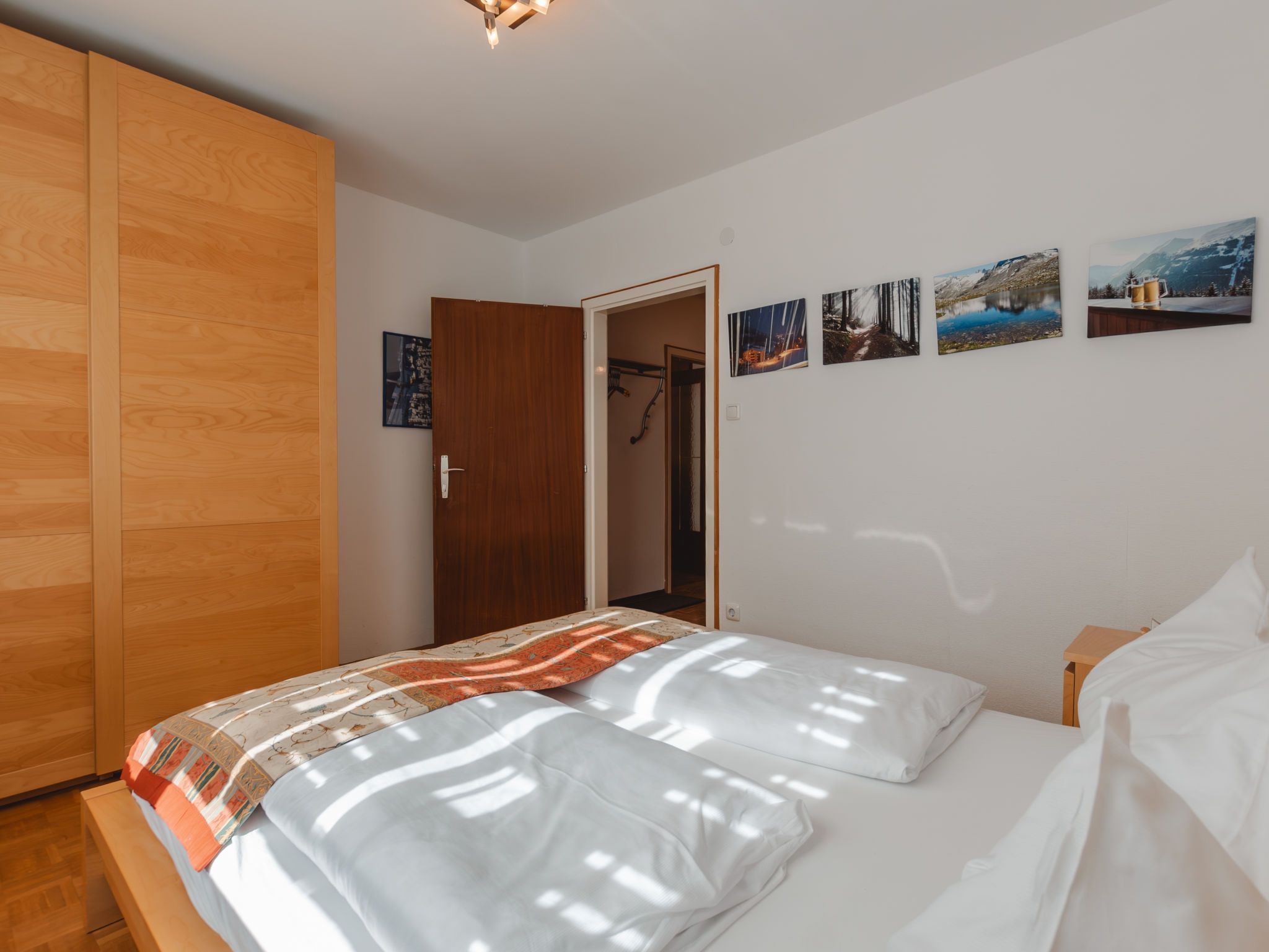 Murmeltier, 2-Zimmer-Wohnung 47 m2 im 2. Stock. Hell, sehr geschmackvoll eingerichtet: Eingang. Wohn-/Schlafzimmer mit 1 Doppeldiwanbett, Esstisch und Kabel-TV (Flachbildschirm). Ausgang zum Balkon. 1 Doppelzimmer mit 1 Doppelbett (160 cm, Länge 200 cm). Kleine Küche (2 Kochplatten, Toaster, Wasserkocher, Mikrowelle, elektrische Kaffeemaschine, Kapseln für die Kaffeemaschine (Nespresso) extra). Bad/WC. Holzdielenboden. Balkon 6 m2. Balkonmöbel. Sehr schöne Sicht auf die Berge. Bitte beachten: geeignet für Familien. Rauchmelder. 50403-000468-2022