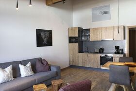 Superior 213 für bis zu 4 Personen, 2-Zimmer-Wohnung 50 m2 im 2. Stock. Hell, komfortabel und geschmackvoll eingerichtet: Wohn-/Schlafzimmer mit 1 Doppeldiwanbett, Essecke und Sat-TV (Flachbildschirm). 1 Doppelzimmer. Offene Küche (Backofen, Geschirrspüler, 4 Glaskeramikplatten, Toaster, Wasserkocher, Mikrowelle, elektrische Kaffeemaschine). Dusche/WC. Balkon. Balkonmöbel. Schöne Sicht auf die Berge. Zur Verfügung: Haartrockner. Internet (Wireless LAN, gratis). Bitte beachten: Nichtraucher-Unterkunft. 50616-001305-2020
